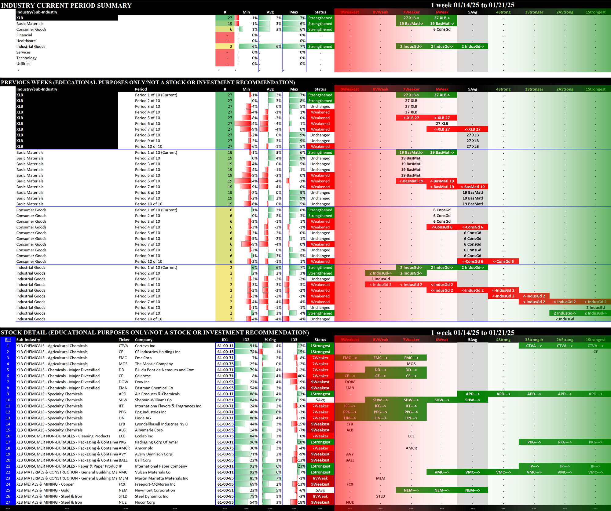 2.1 XLB Materials (27 stocks, small), STRENGTHENED RATING