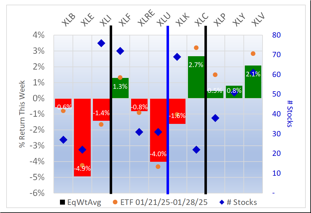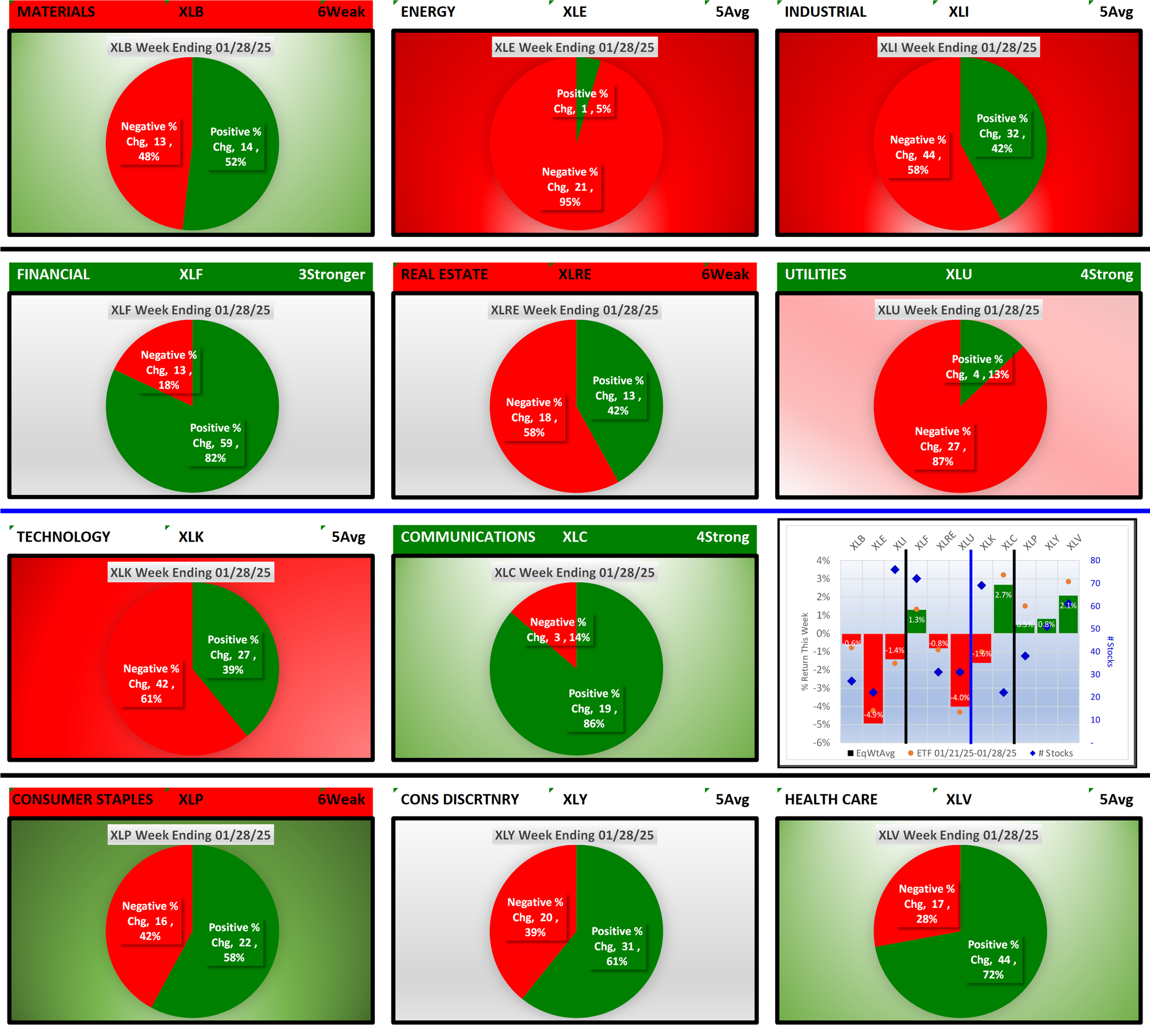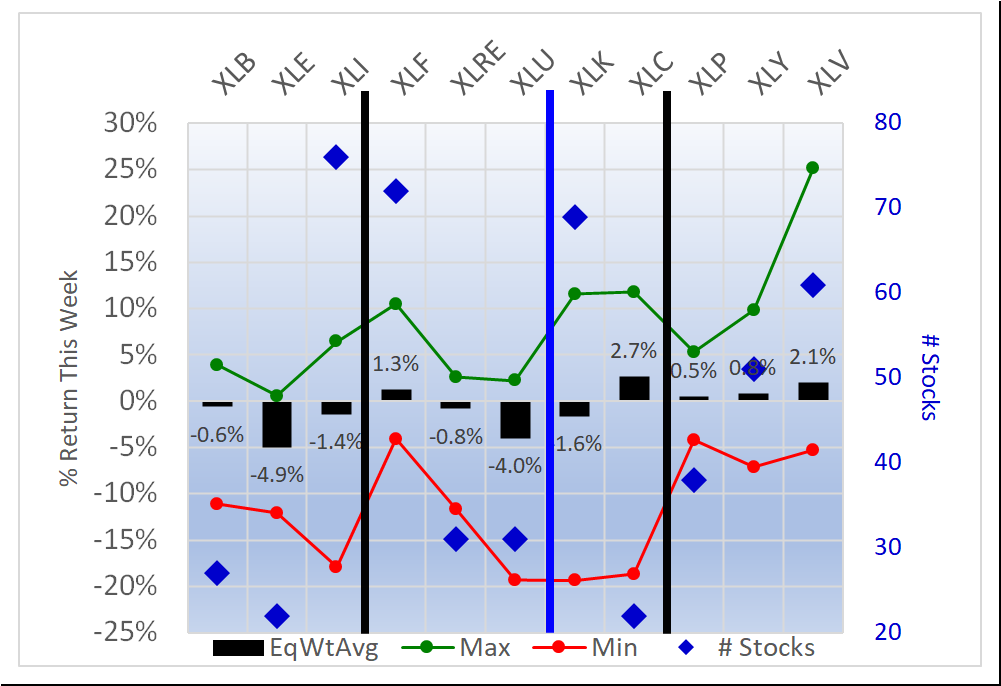- XLV/Health Care, 2.1% average for 61 stocks