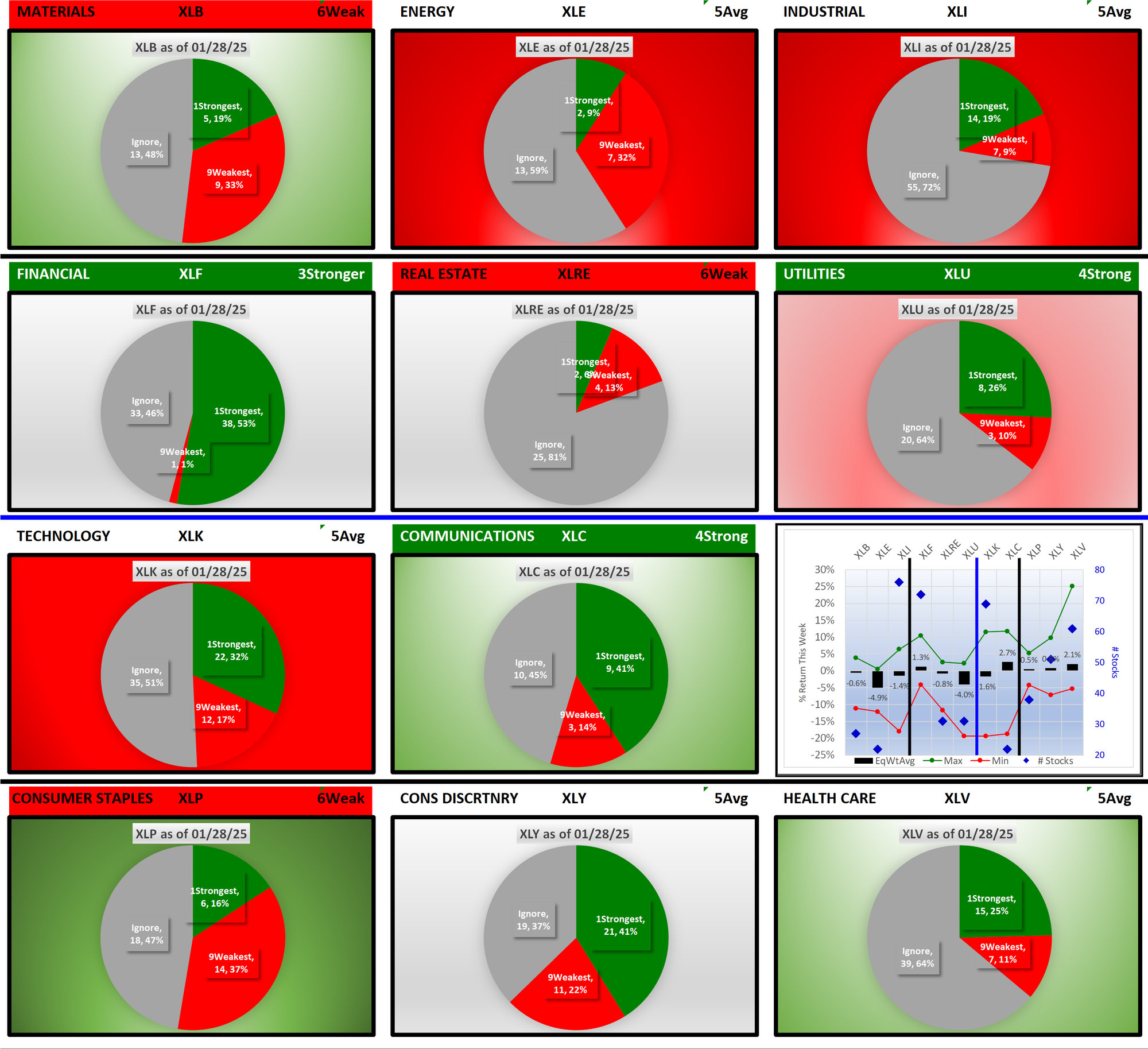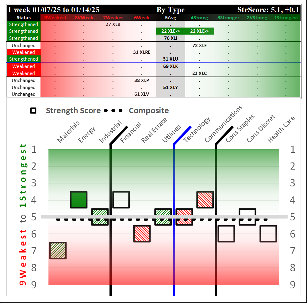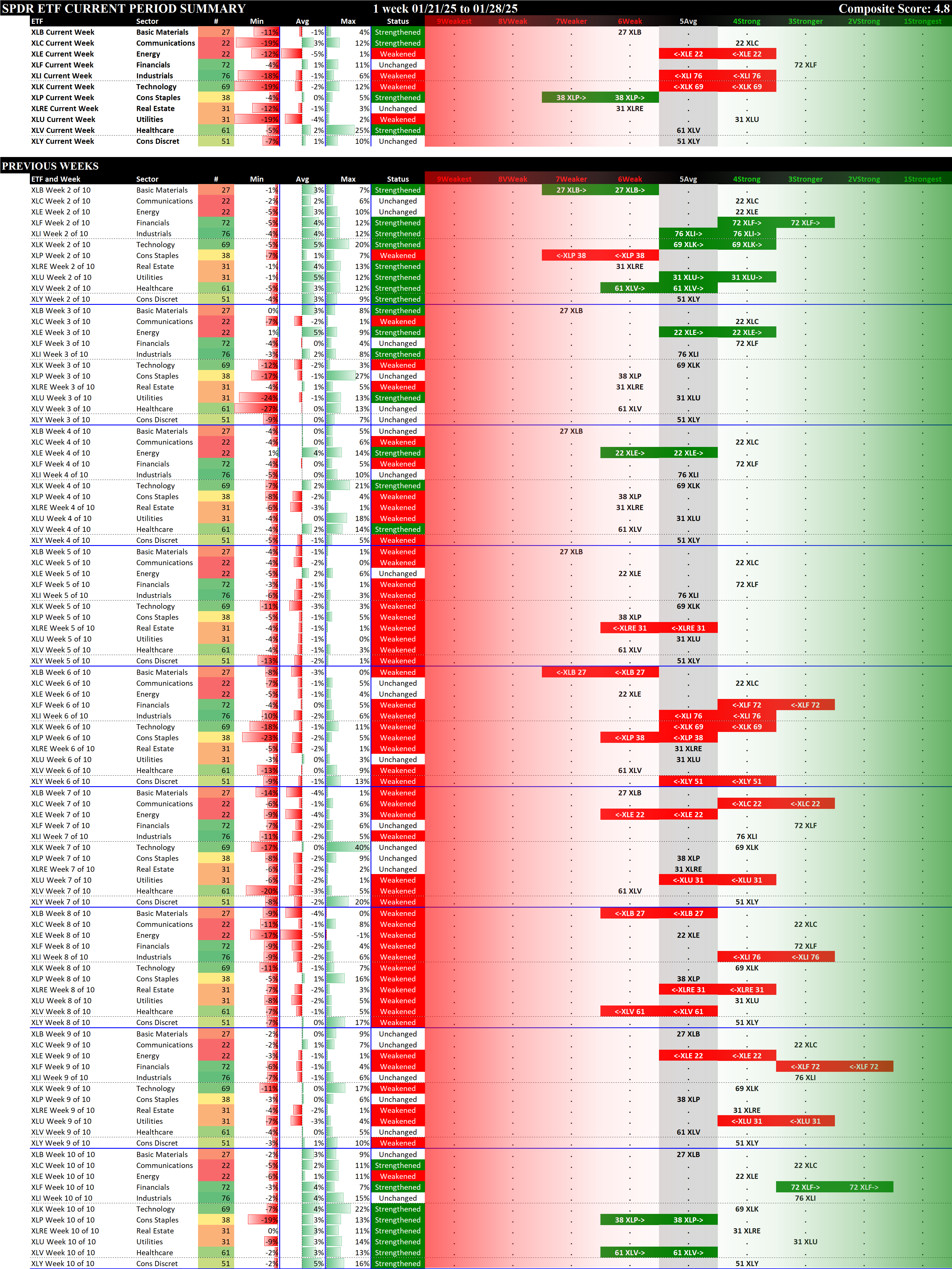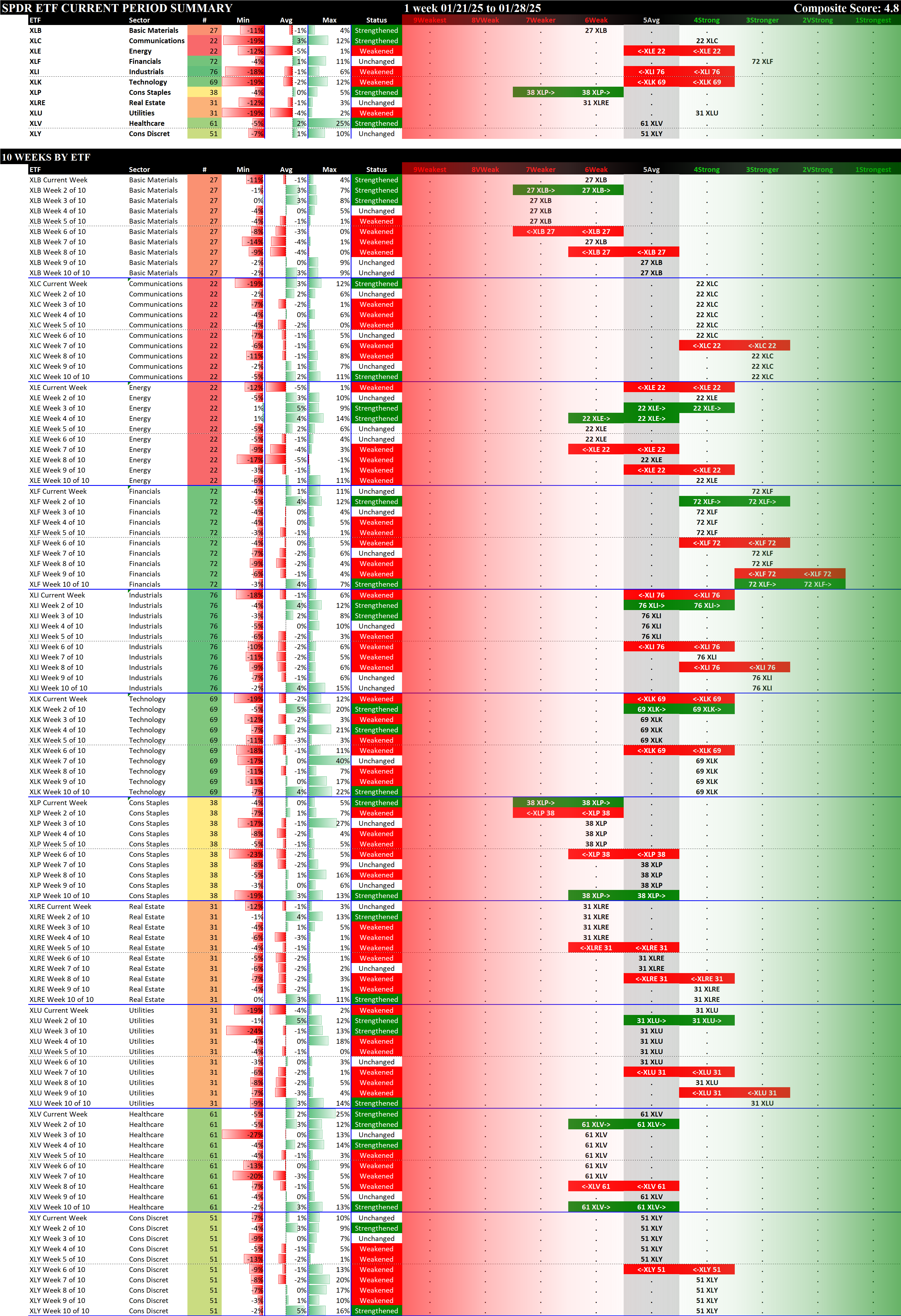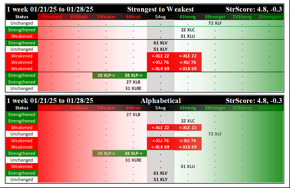 SMO Exclusive: SPDR Sector ETFs Strength Report Tuesday 2025-01-28 Weakened -0.3 to 4.8 Strength Score