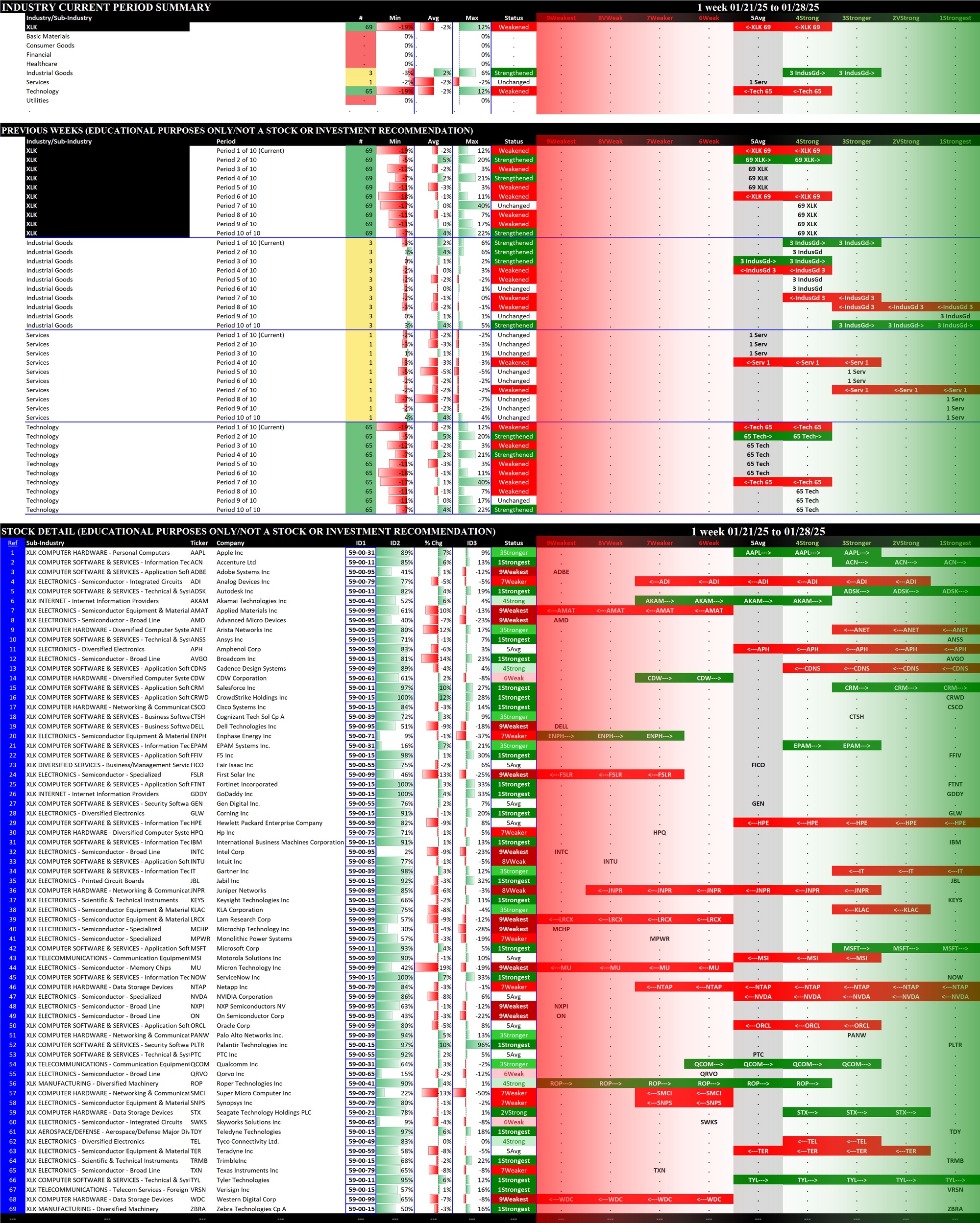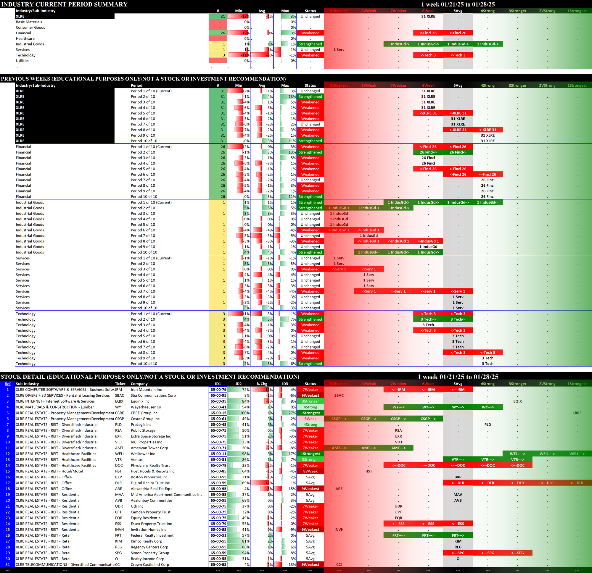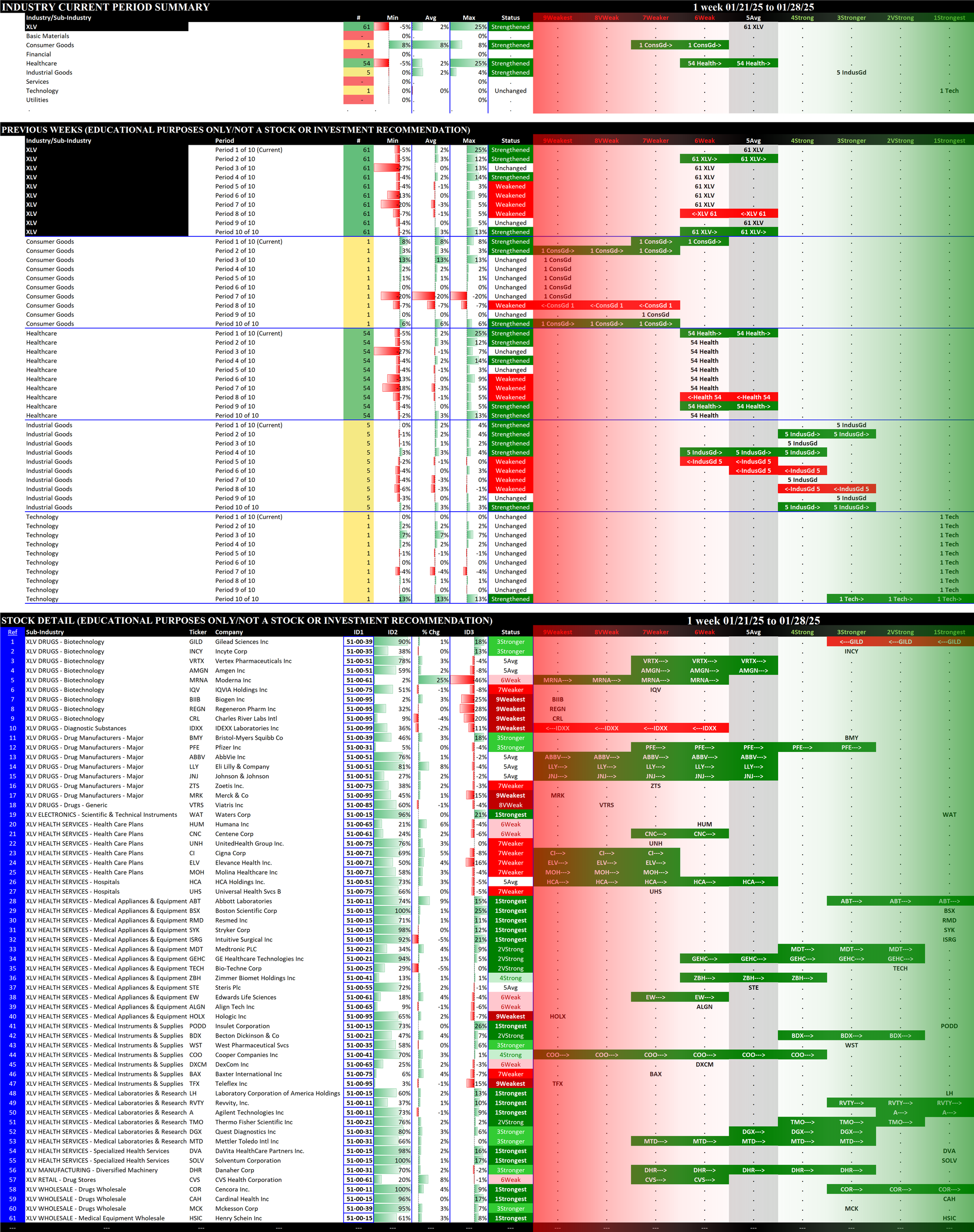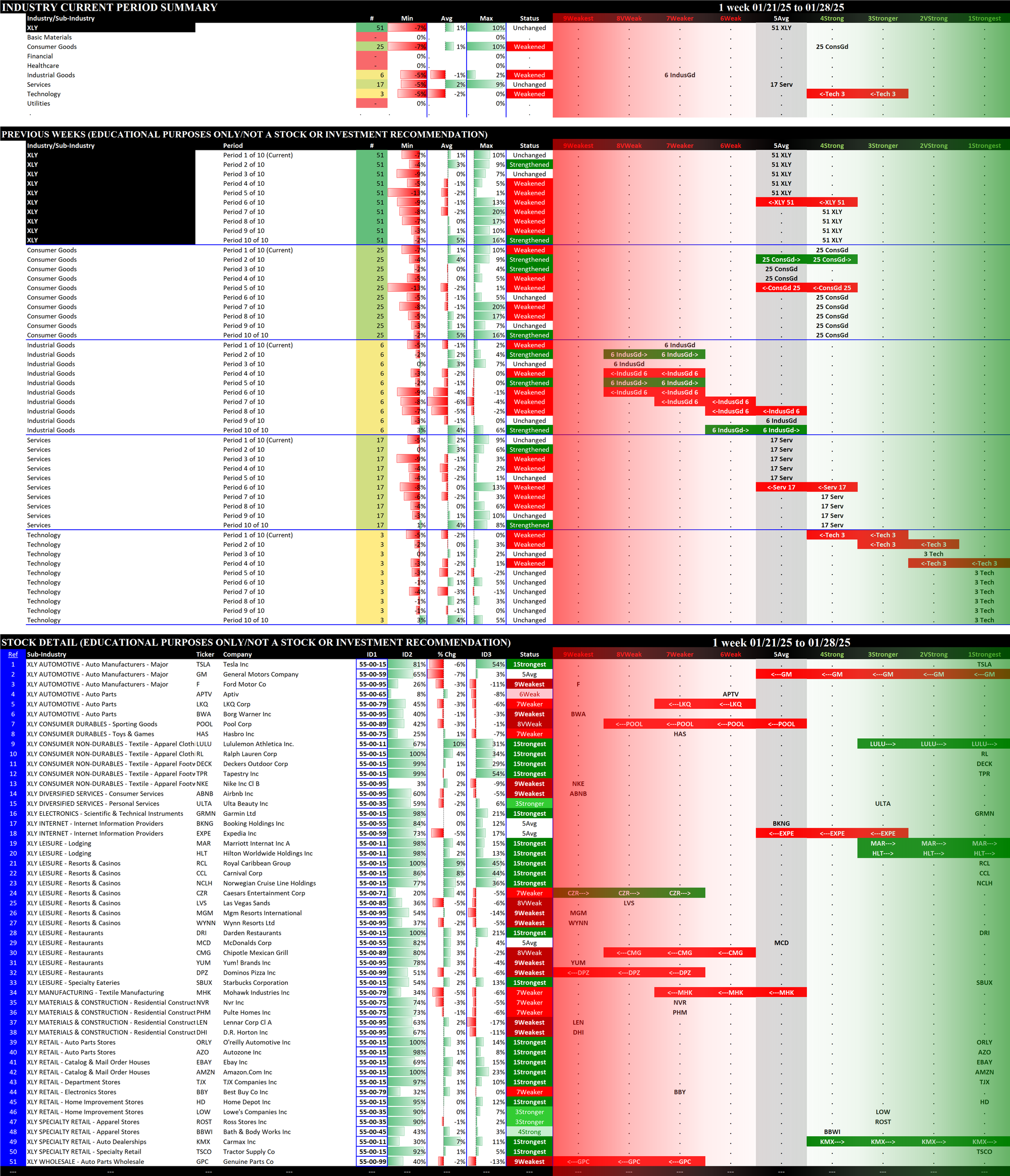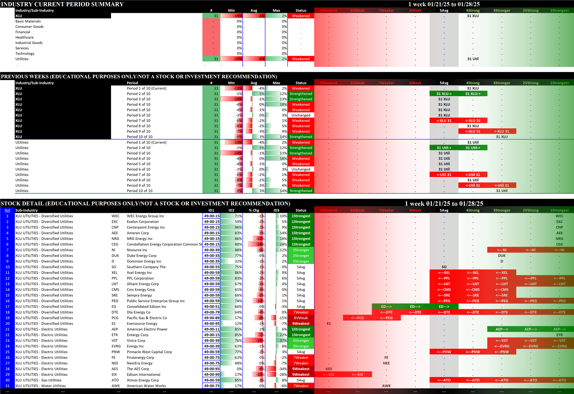 SMO Exclusive: SPDR Sector ETFs Strength Report Tuesday 2025-01-28 Weakened -0.3 to 4.8 Strength Score