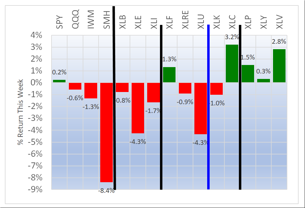 XLE/Energy was the worst performer while XLC/Communications Services had the strongest week.