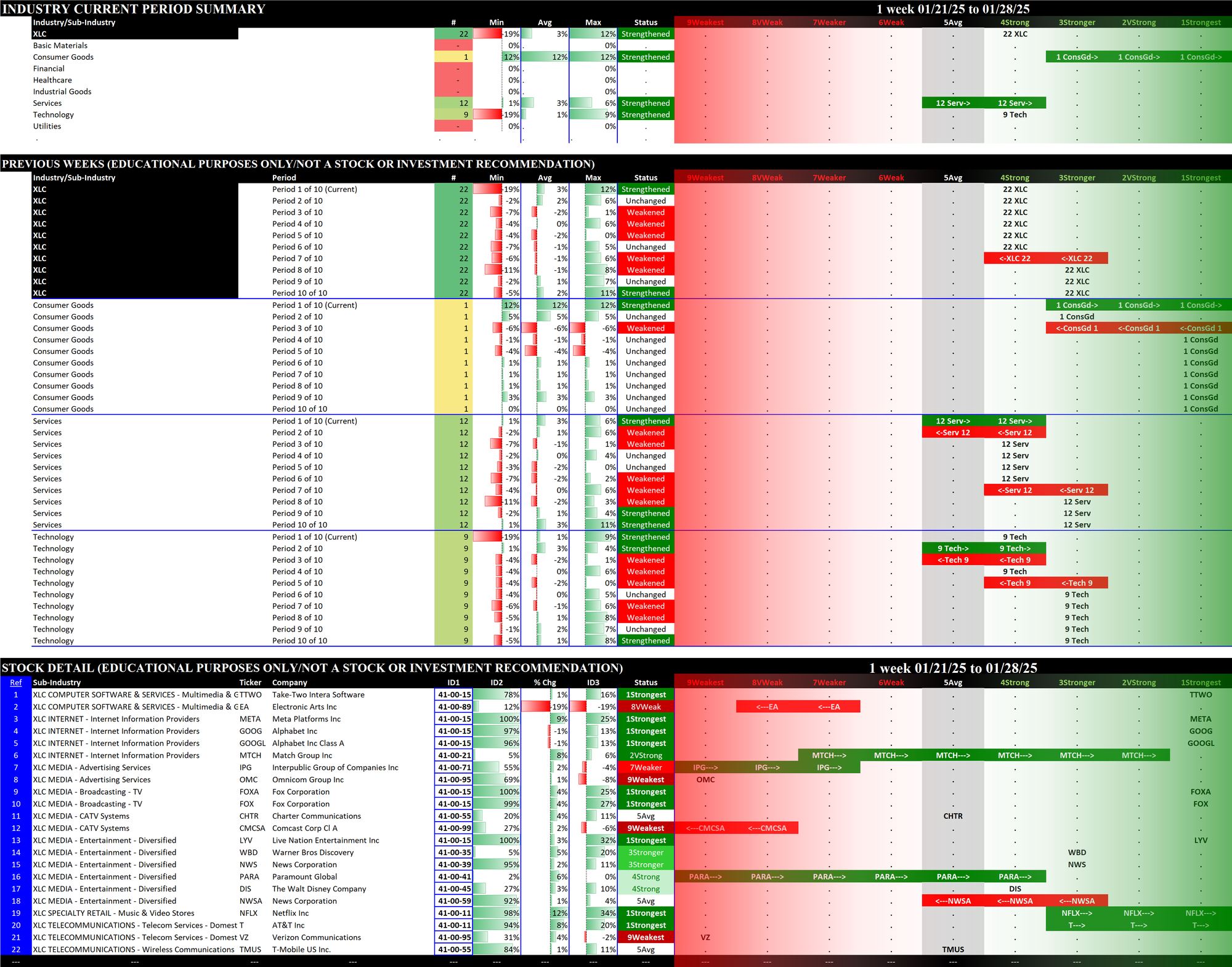 2.2 XLC Communication Services (22 stocks, small), Strengthened at 4Strong