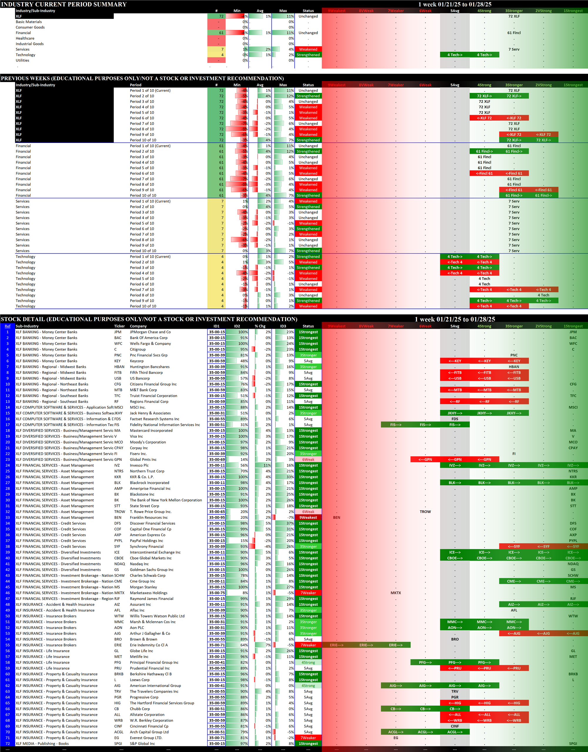 2.4 XLF Financial (72 stocks, large), Unchanged at 3Stronger = BEST