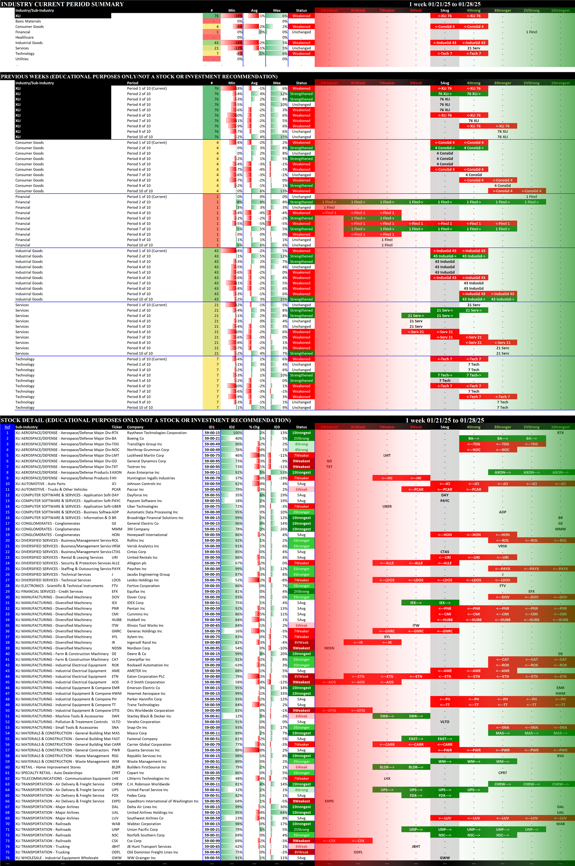 2.5 XLI Industrial (76 stocks, large), WEAKENED RATING TO 5Avg