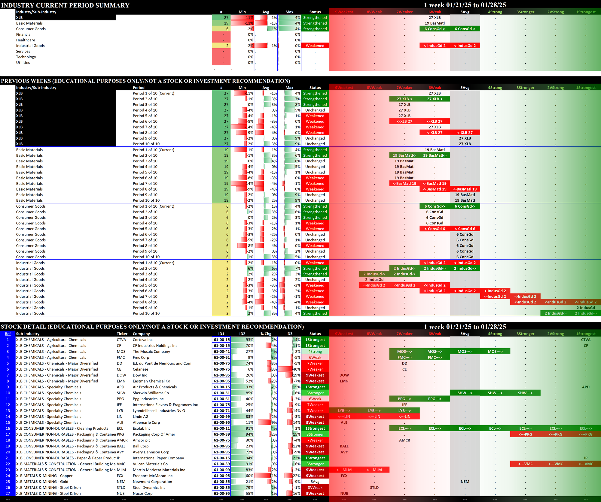 2.1 XLB Materials (27 stocks, small), Strengthened at 6Weak = tied for WORST