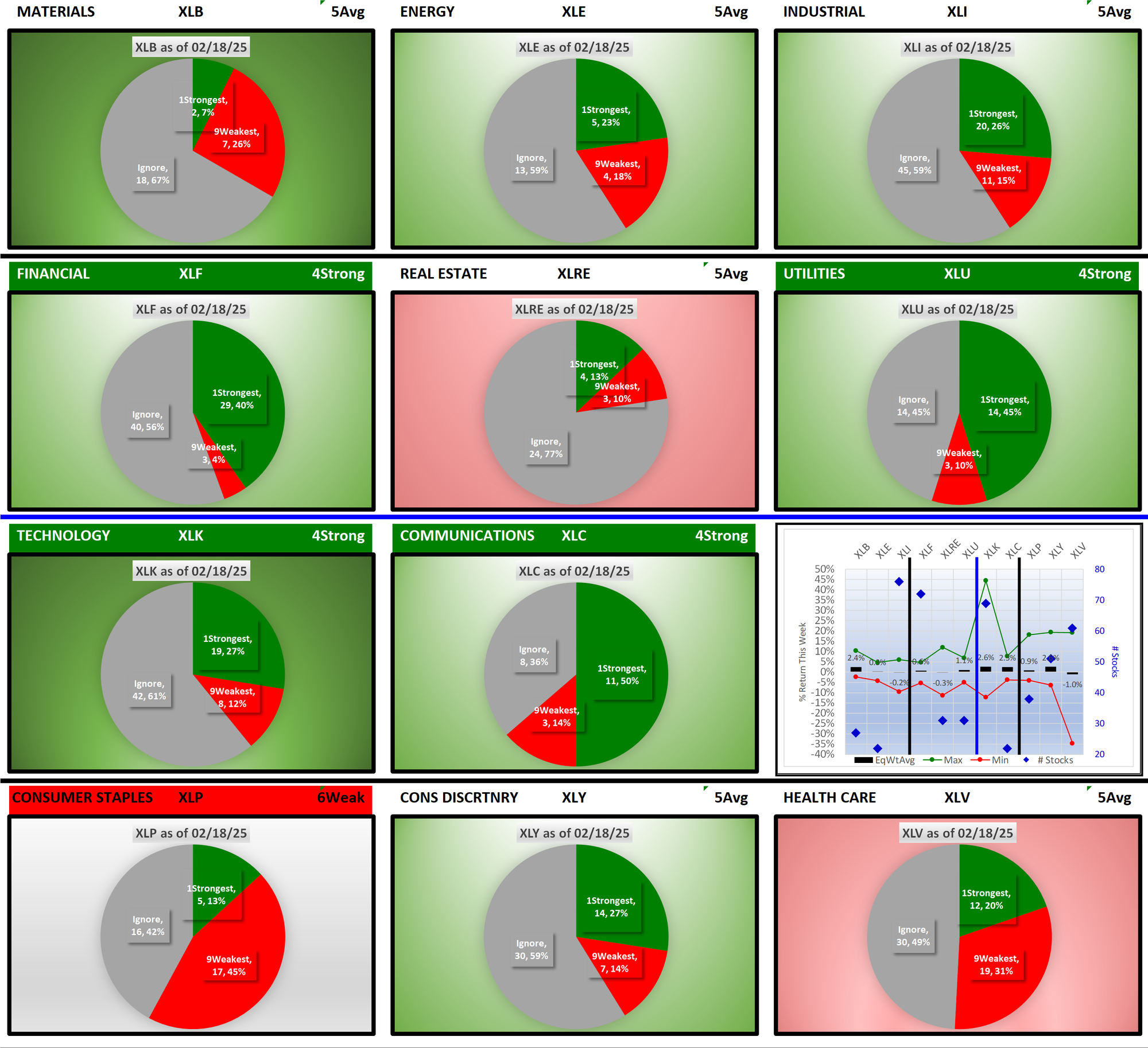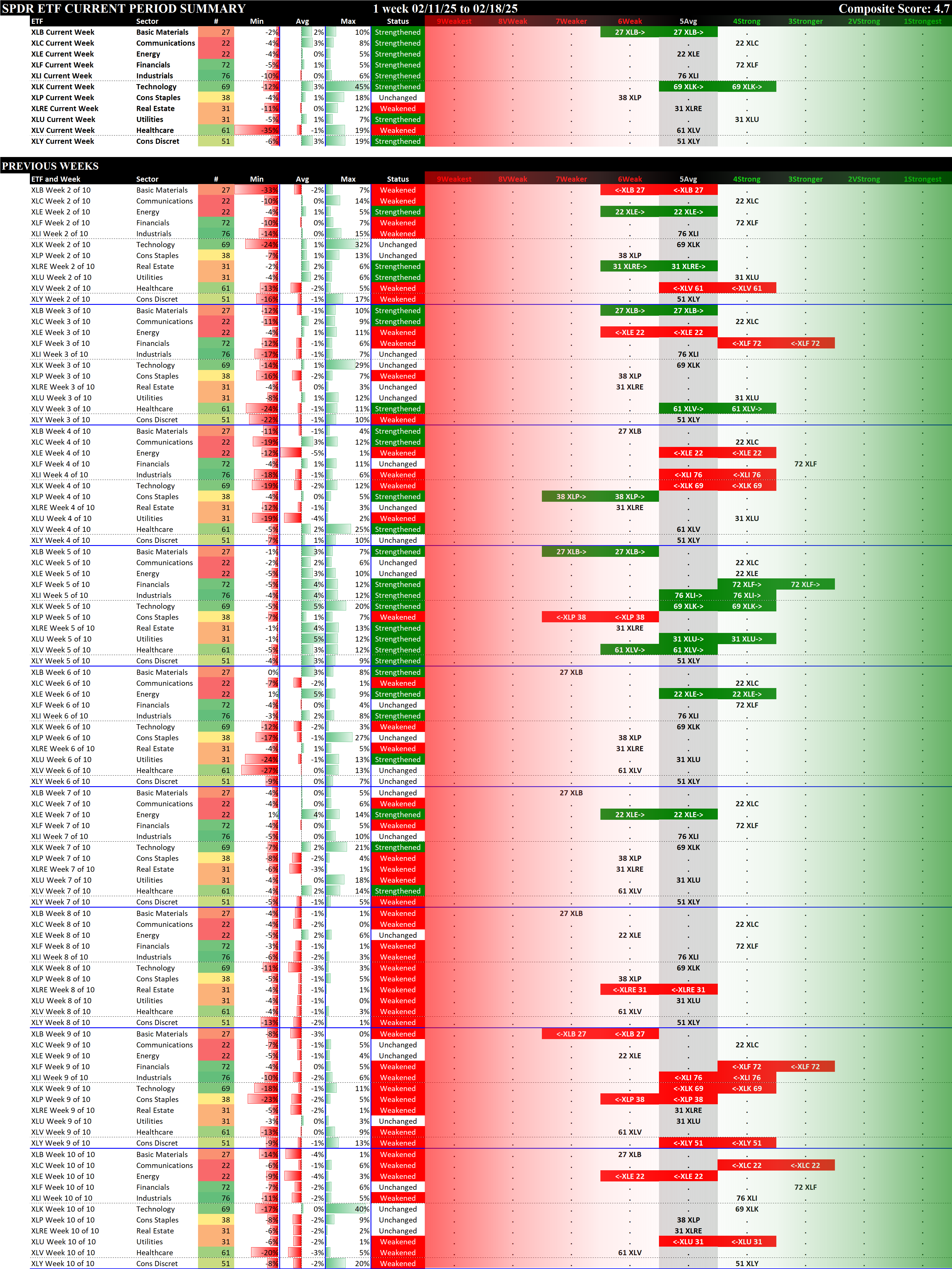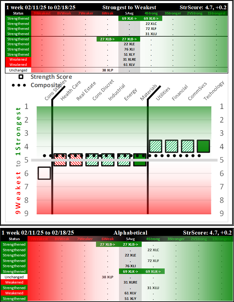SMO Exclusive: SPDR Sector ETFs Strength Report Tuesday 2025-02-18 Strengthened +0.2 to 4.7 Strength Score