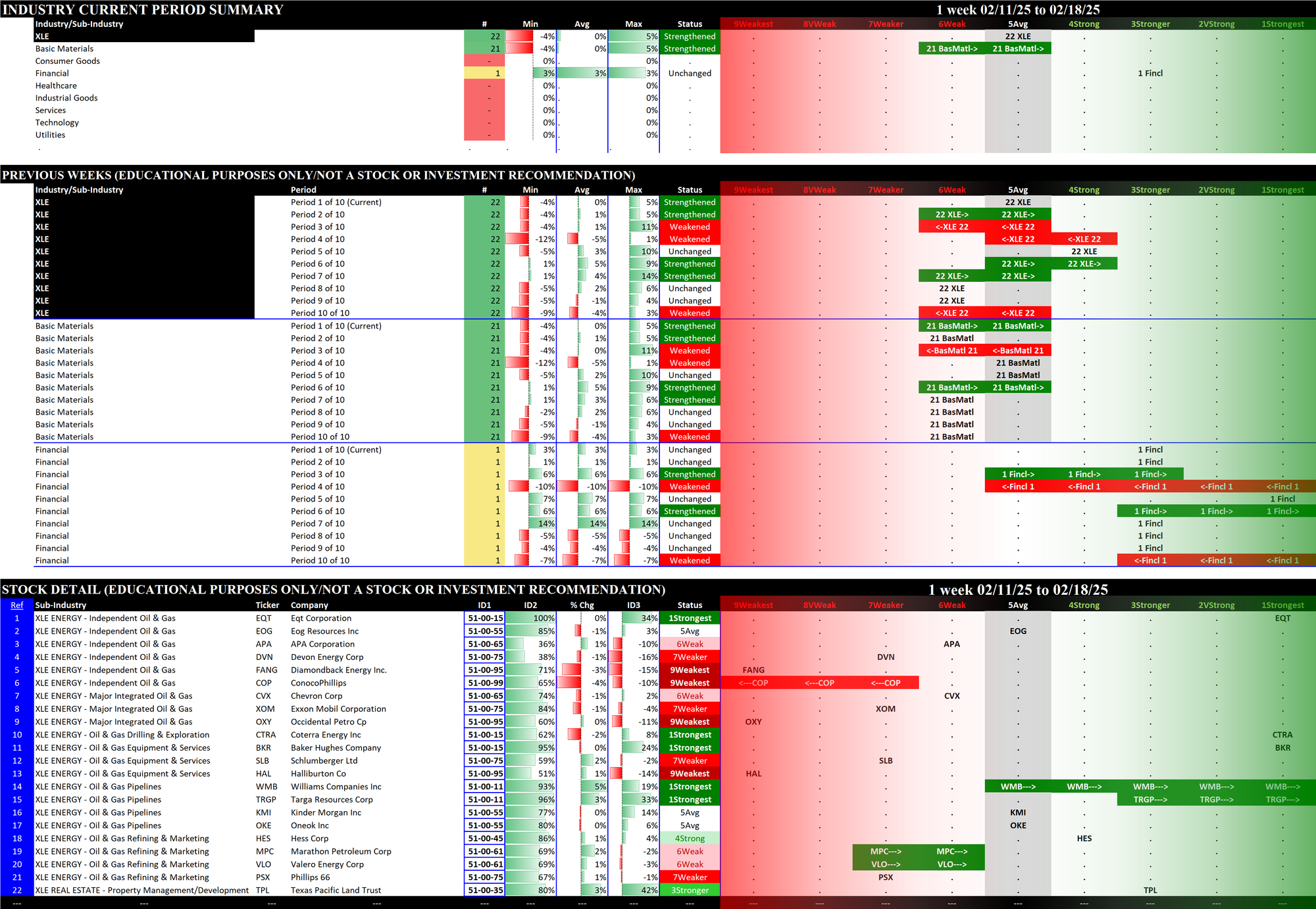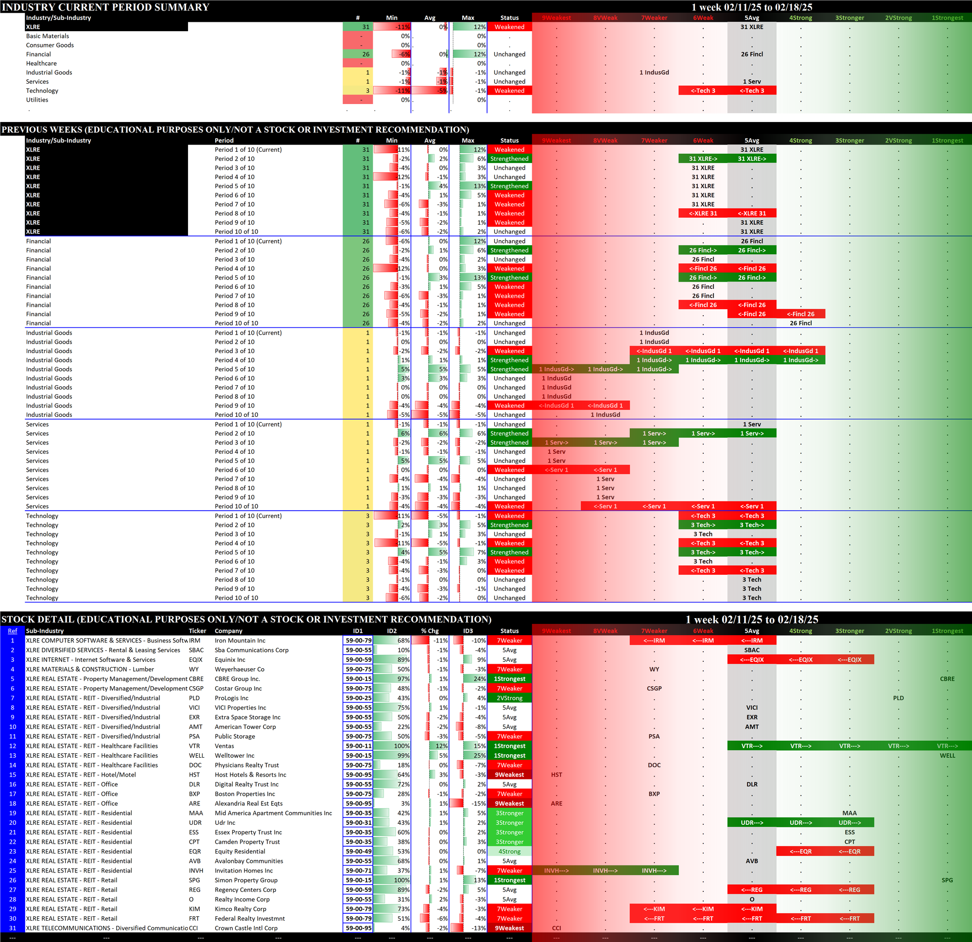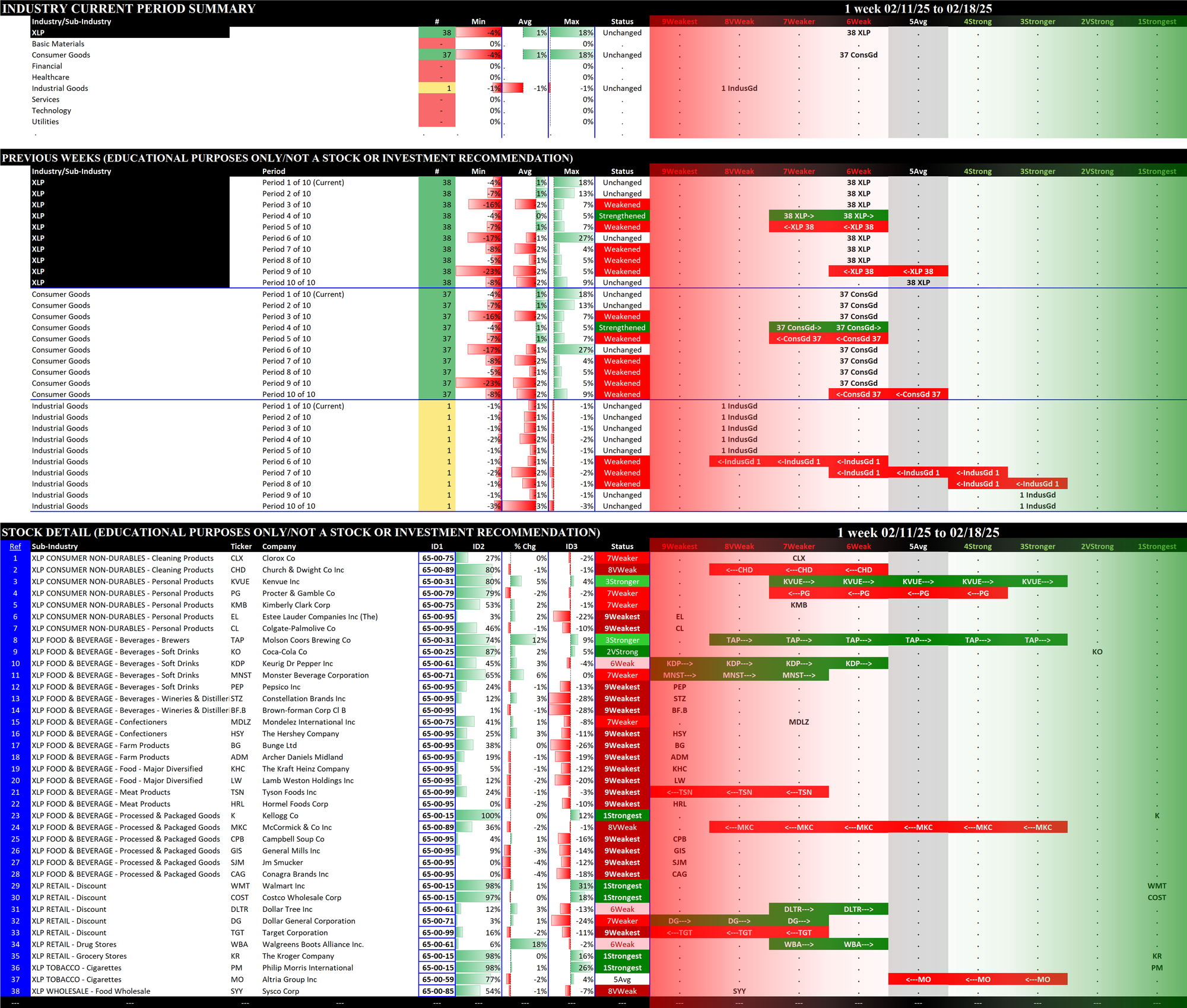 02/04/2025 = Unchanged, 02/11/2025 = Weakened, 02/18/2025 = Strengthened.