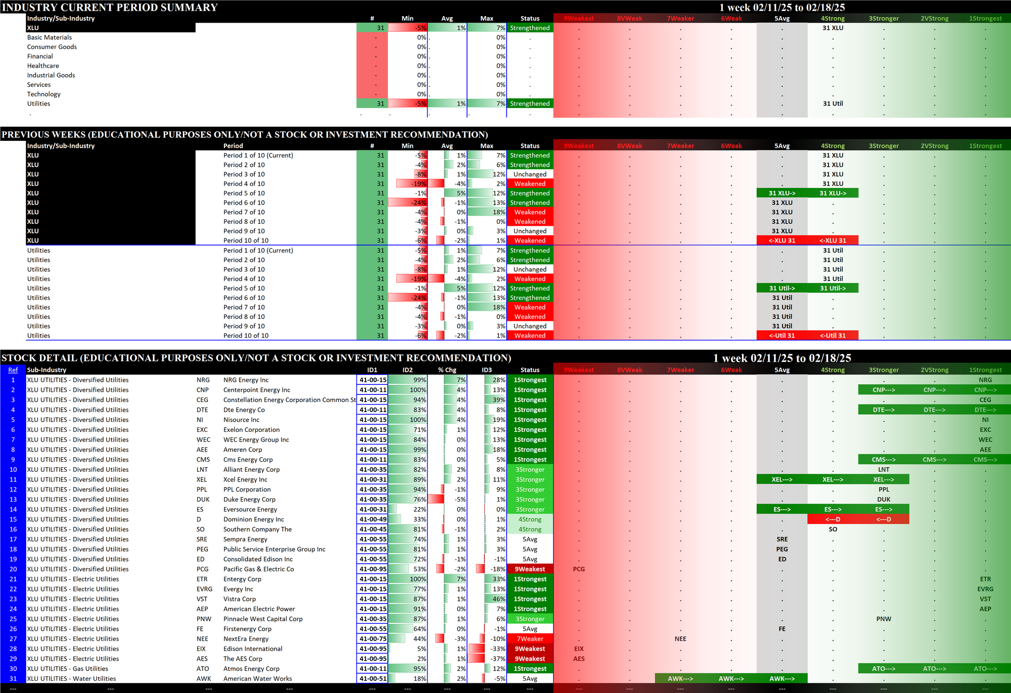 2.9 XLU Utilities (31 stocks, small/mid-sized), Strengthened at 4Strong = tied for BEST