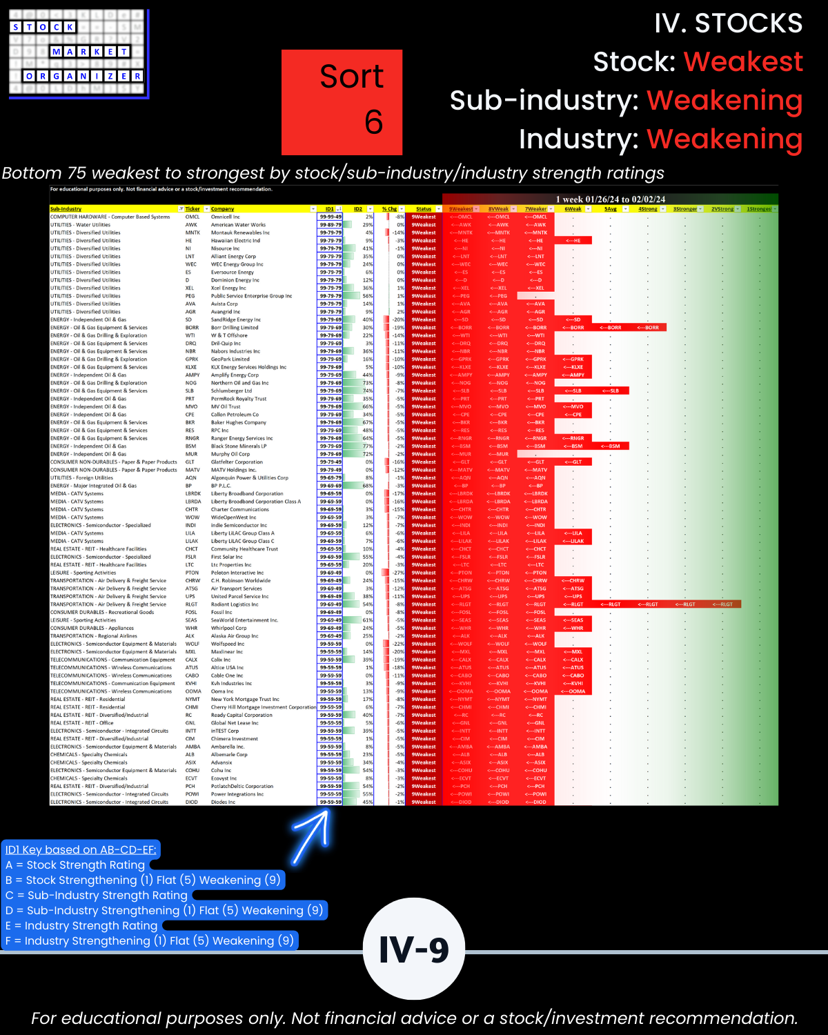 SMO Exclusive: Stock Report 2024-02-02, Weakest Stocks Weakening Sub-industries Weakening Industries