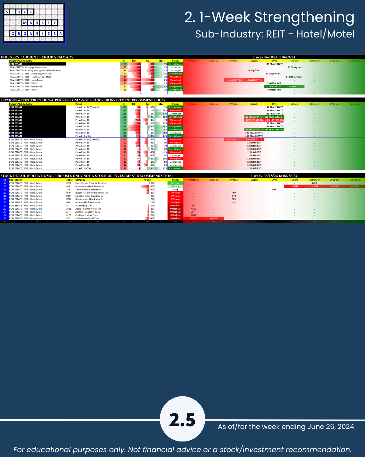 Hotel REITs (which weakened from 6Weak to 7Weaker)