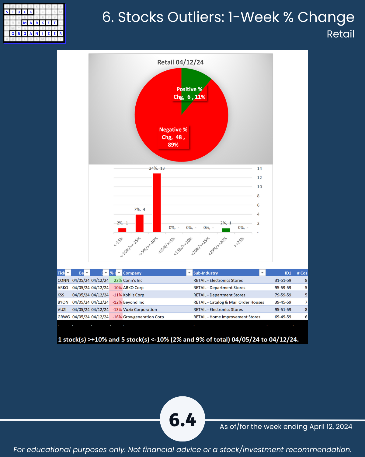 - Outlier Stocks: HOFT -20%, CONN +22%