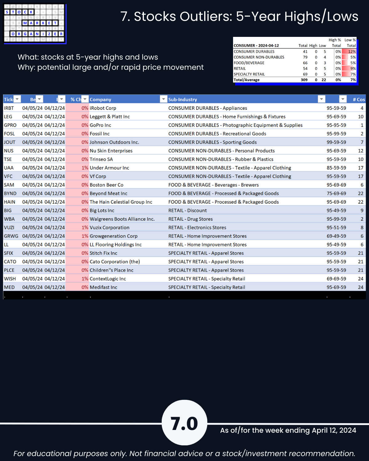 - @ 5 Year+ Highs/Lows: Consumer Durables 12% lows