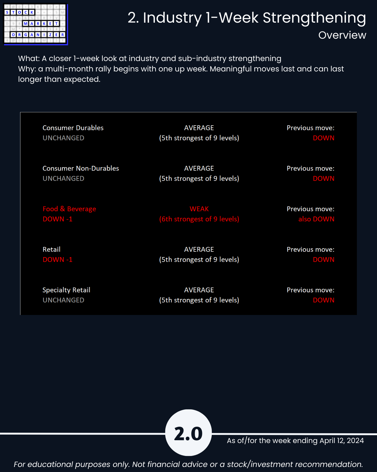 🔹 Industry Strength Level Changes: Food & Beverage, Retail WEAKENED