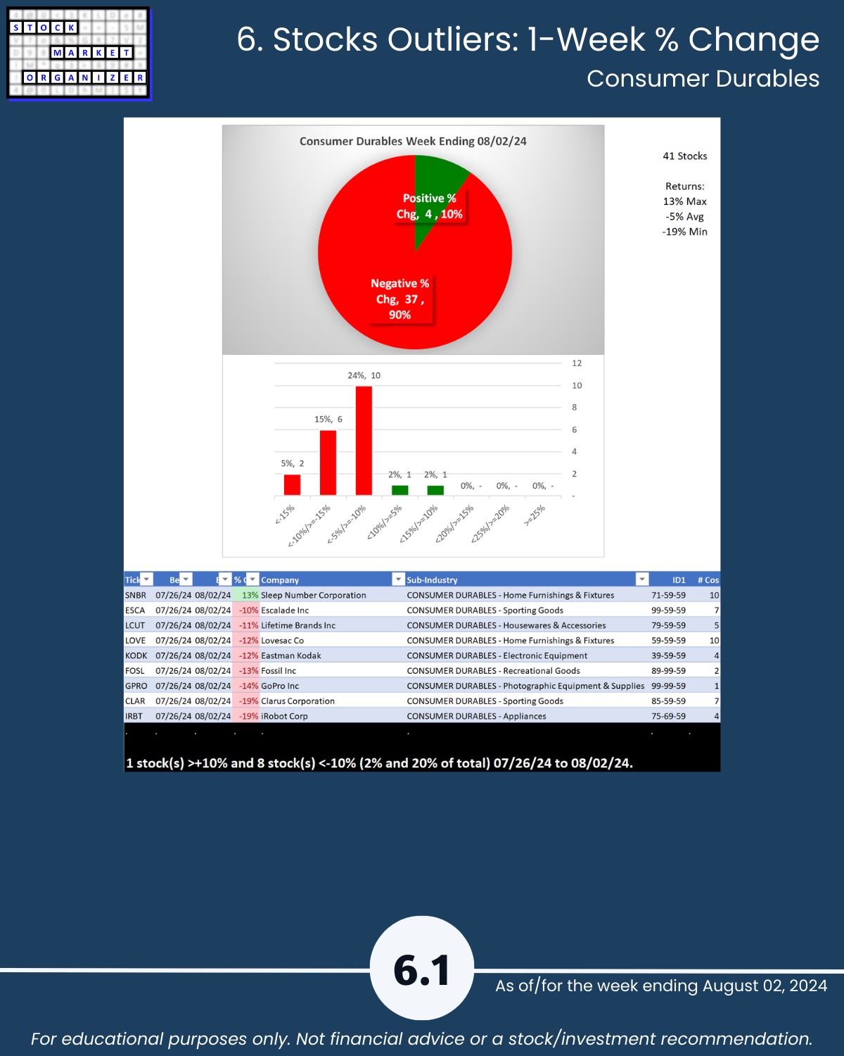 6. Stocks Outliers: 1-Week % Change