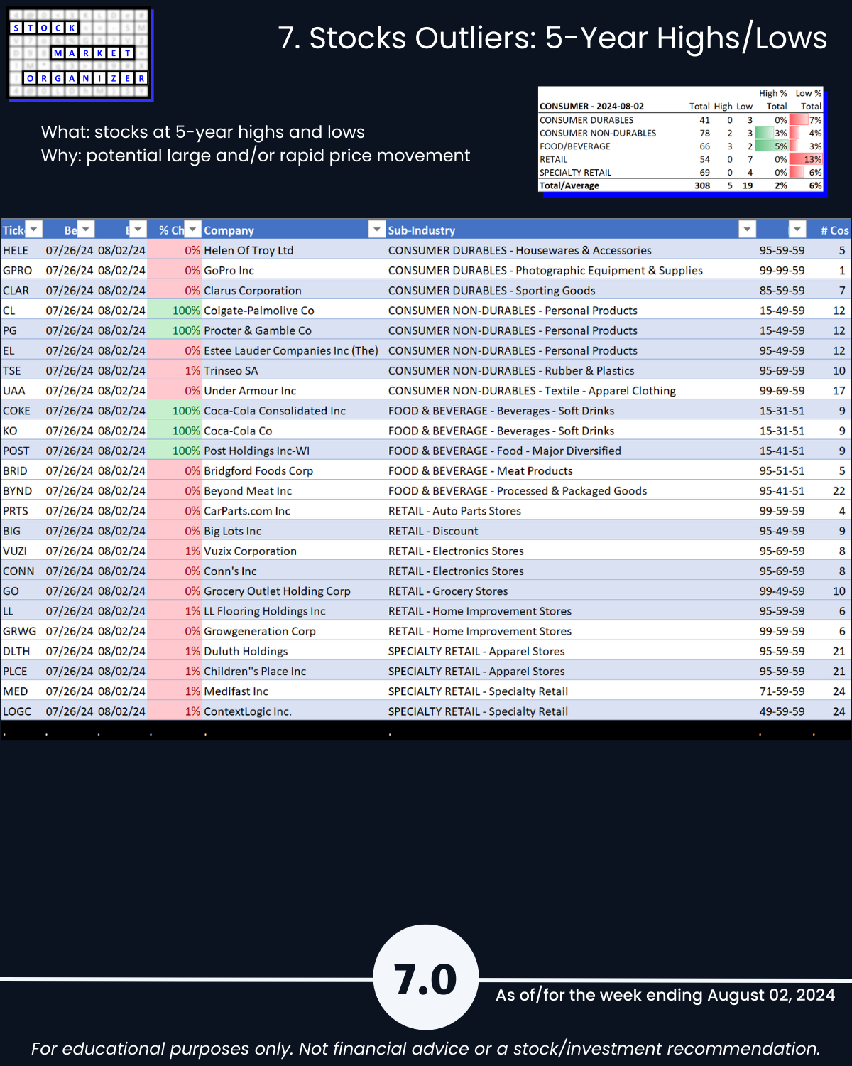 7. Stocks Outliers: 5-Year Highs/Lows