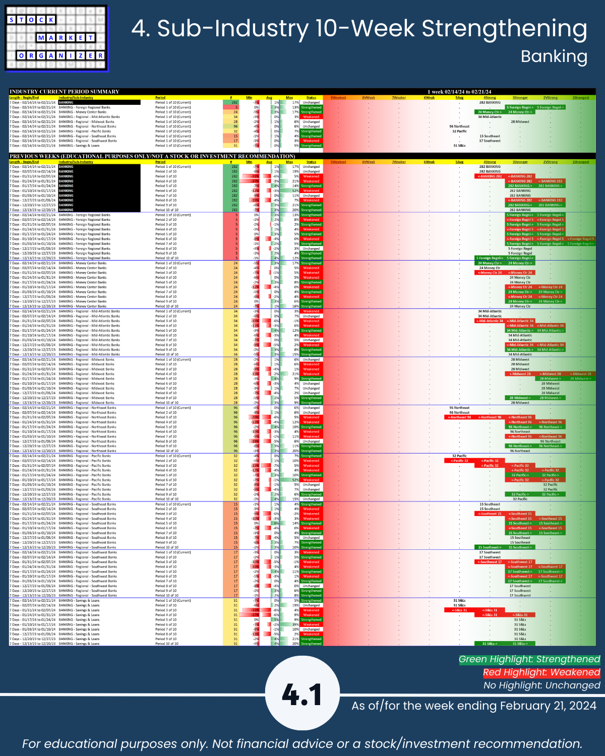 🔹 Foreign Regional Banks = strongest sub-industry, strengthened to Very Strong (2nd strongest) (page 4.1)