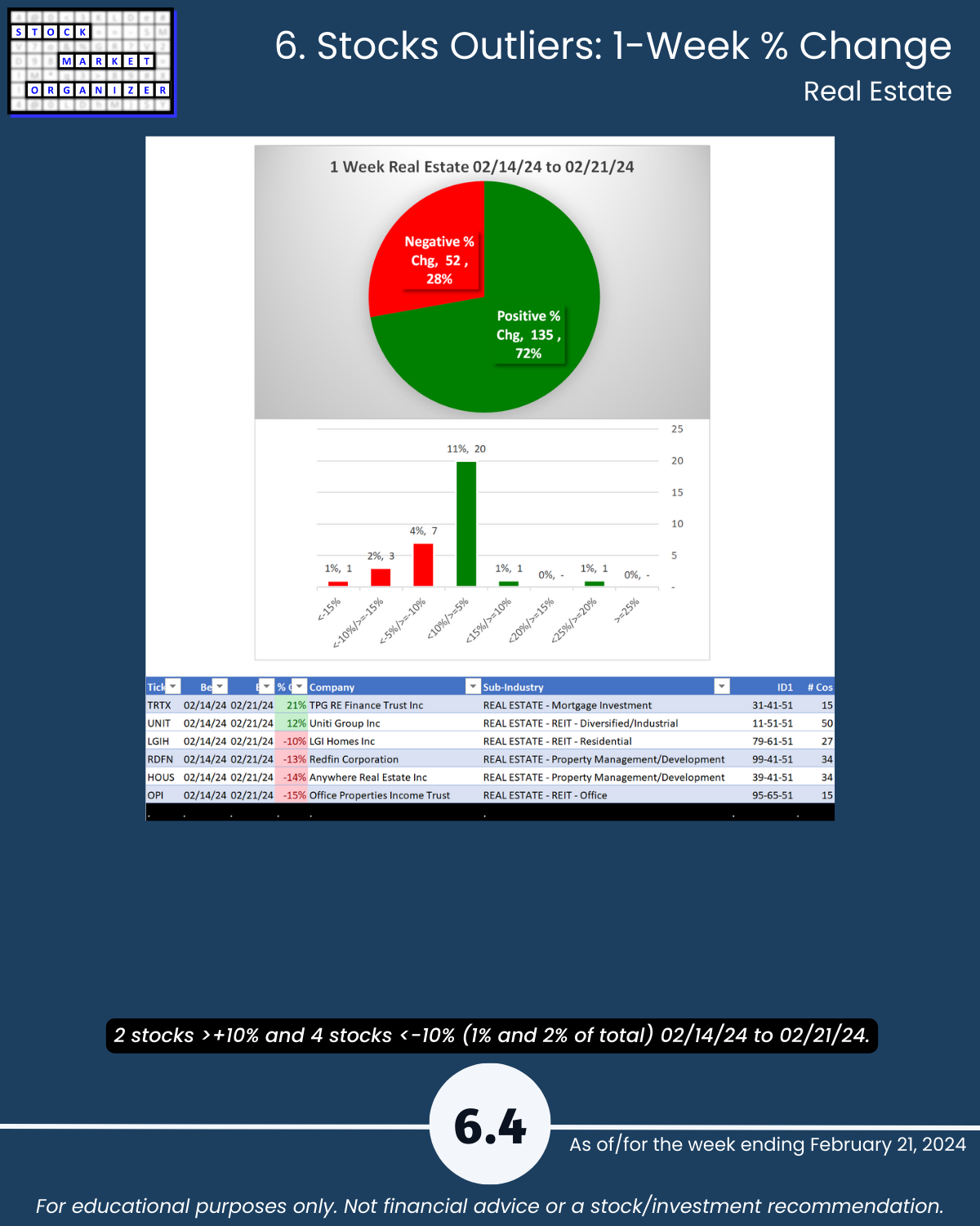 🔹 % Positive Stocks: Real Estate 72%