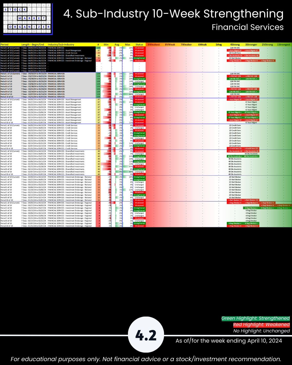 4. Sub-Industry 10-Week Strengthening
