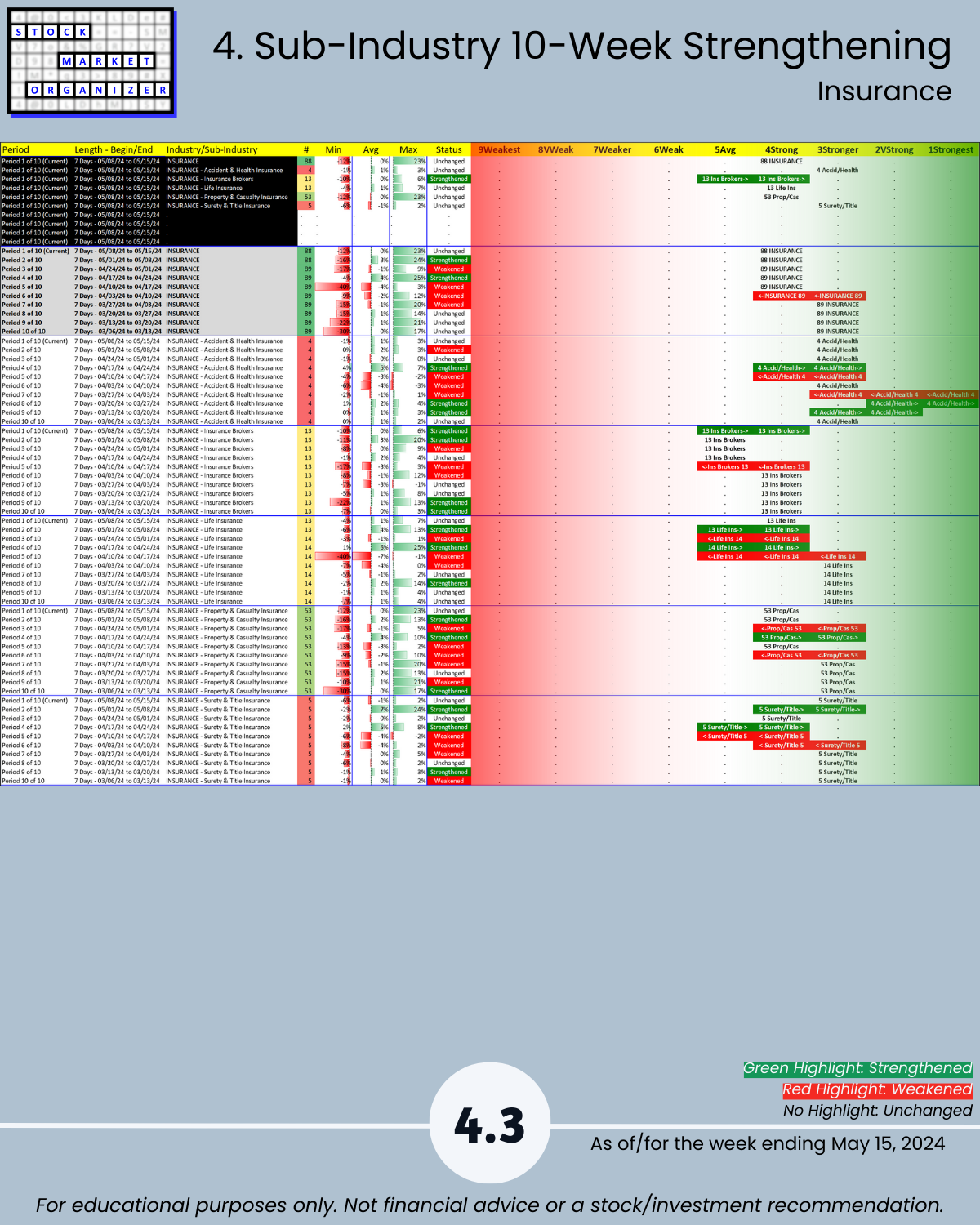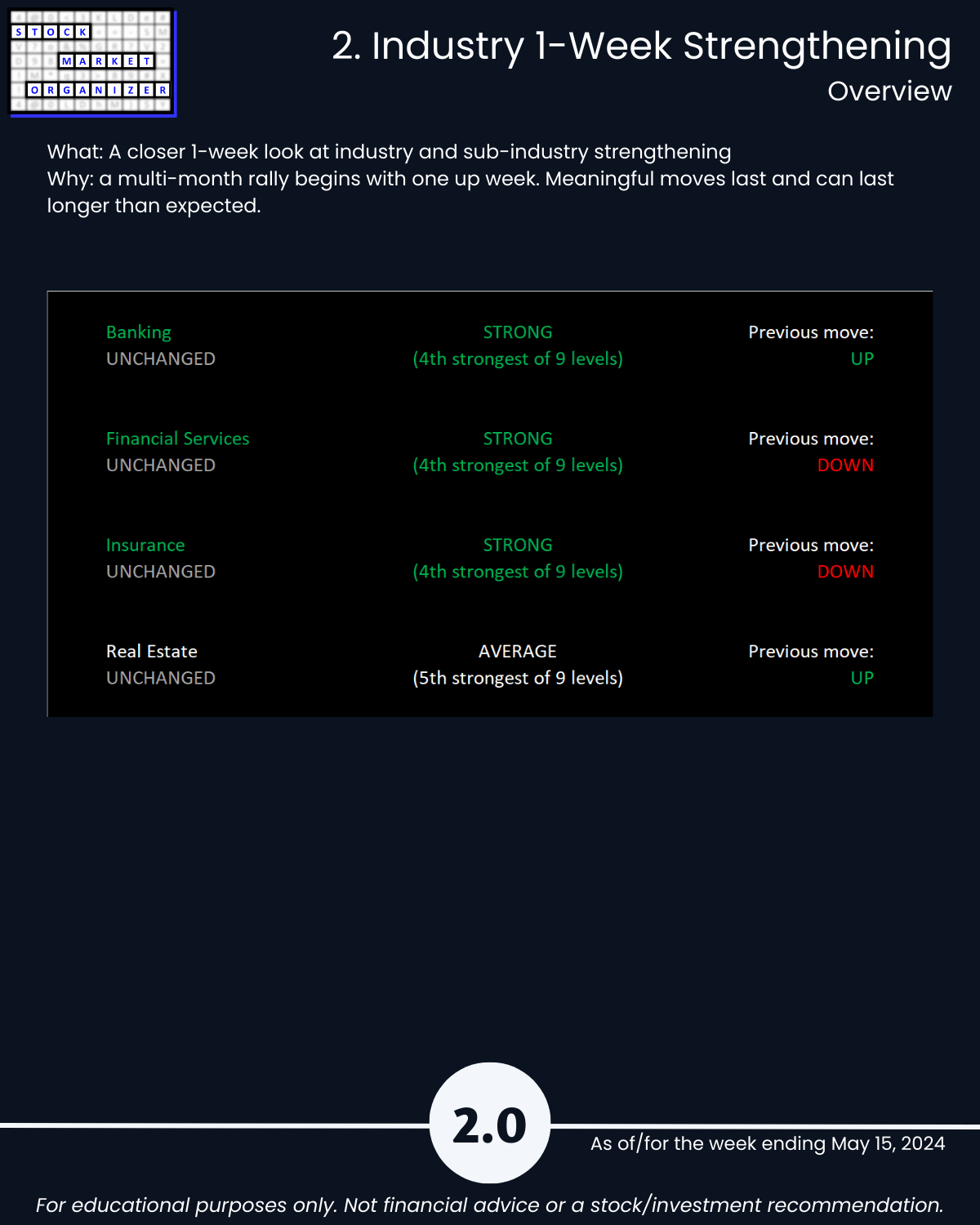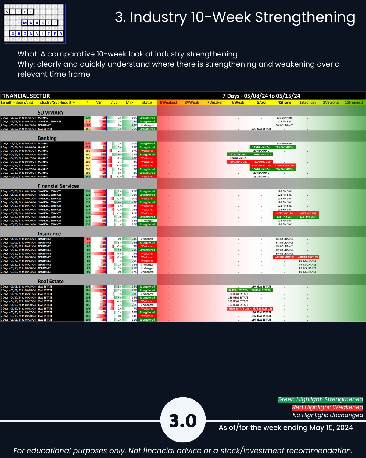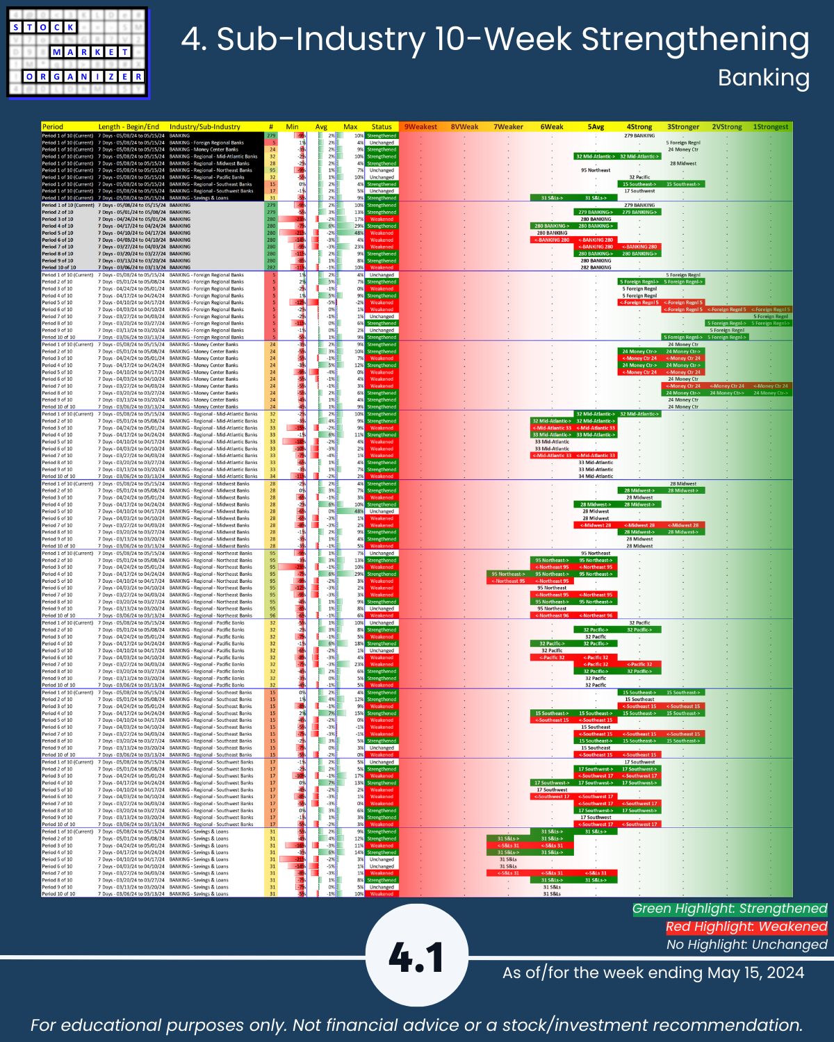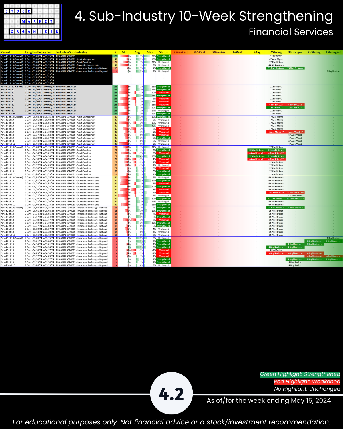 For the full Premium version, which includes the Sections 5, 6, and 7 stocks detail that takes full advantage of the sector, industry, and sub-industry strength and weakness insights available in this free report, please sign up here then read this premium report. For an example of the detail in this section, please see Sections 5, 6, and 7 of the May 8, 2024 Financial sector report.