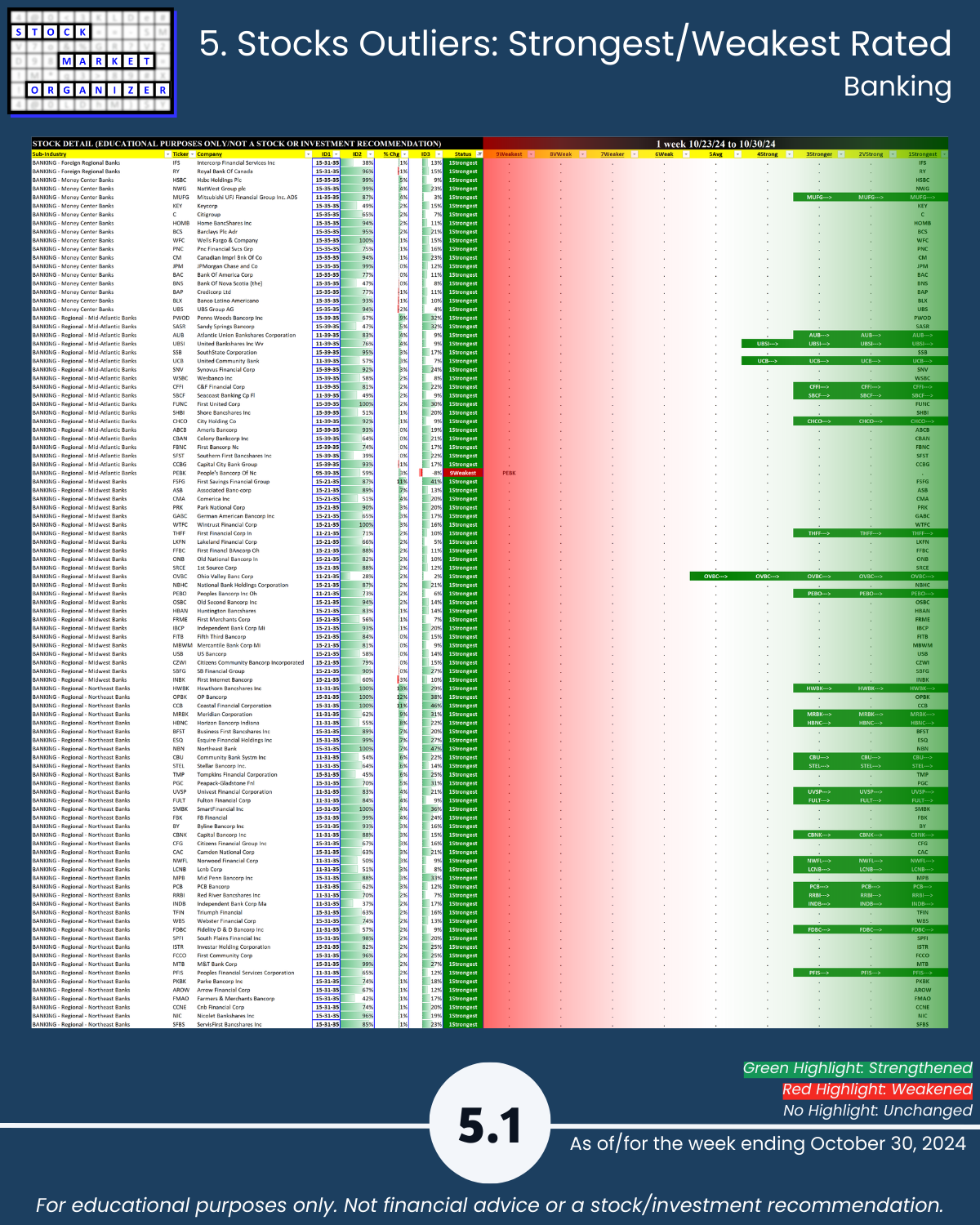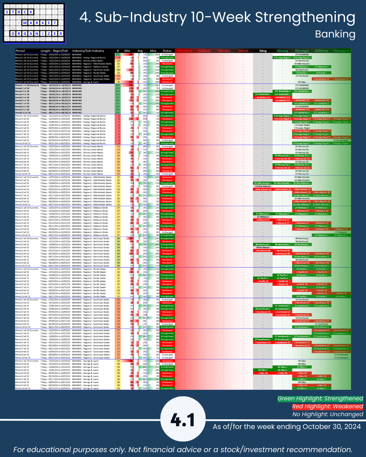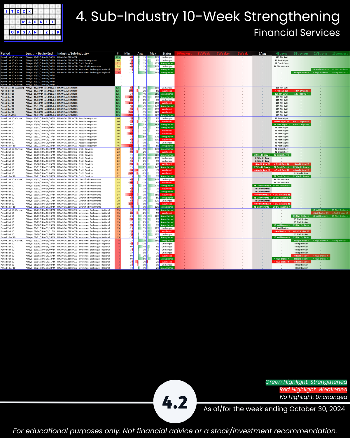 That said, financials remain 4Strong or better - there are better shorting candidates out there, in industries and sectors that are 6Weak or lower and either flat/unchanged or weakening.