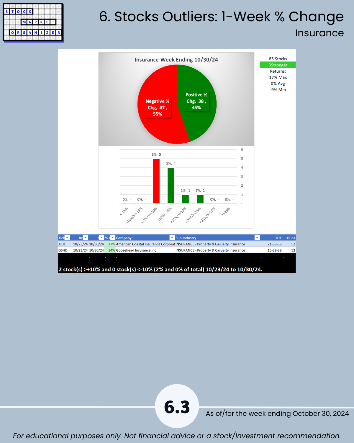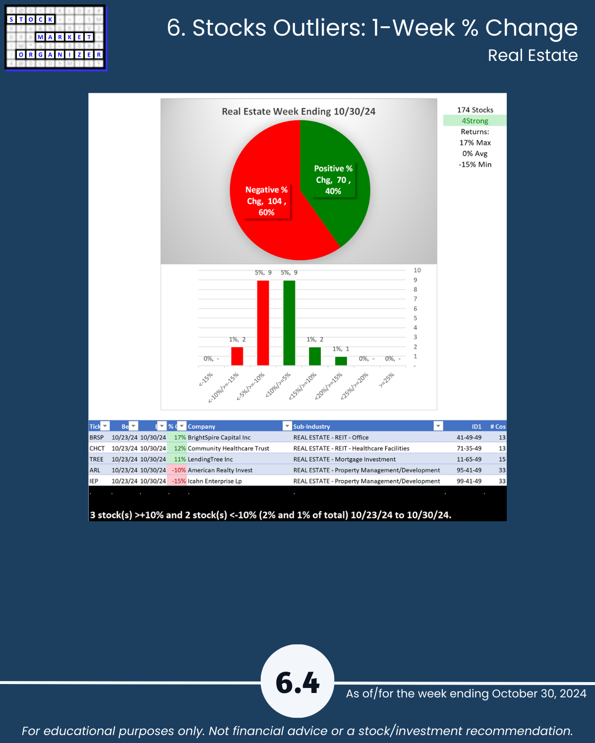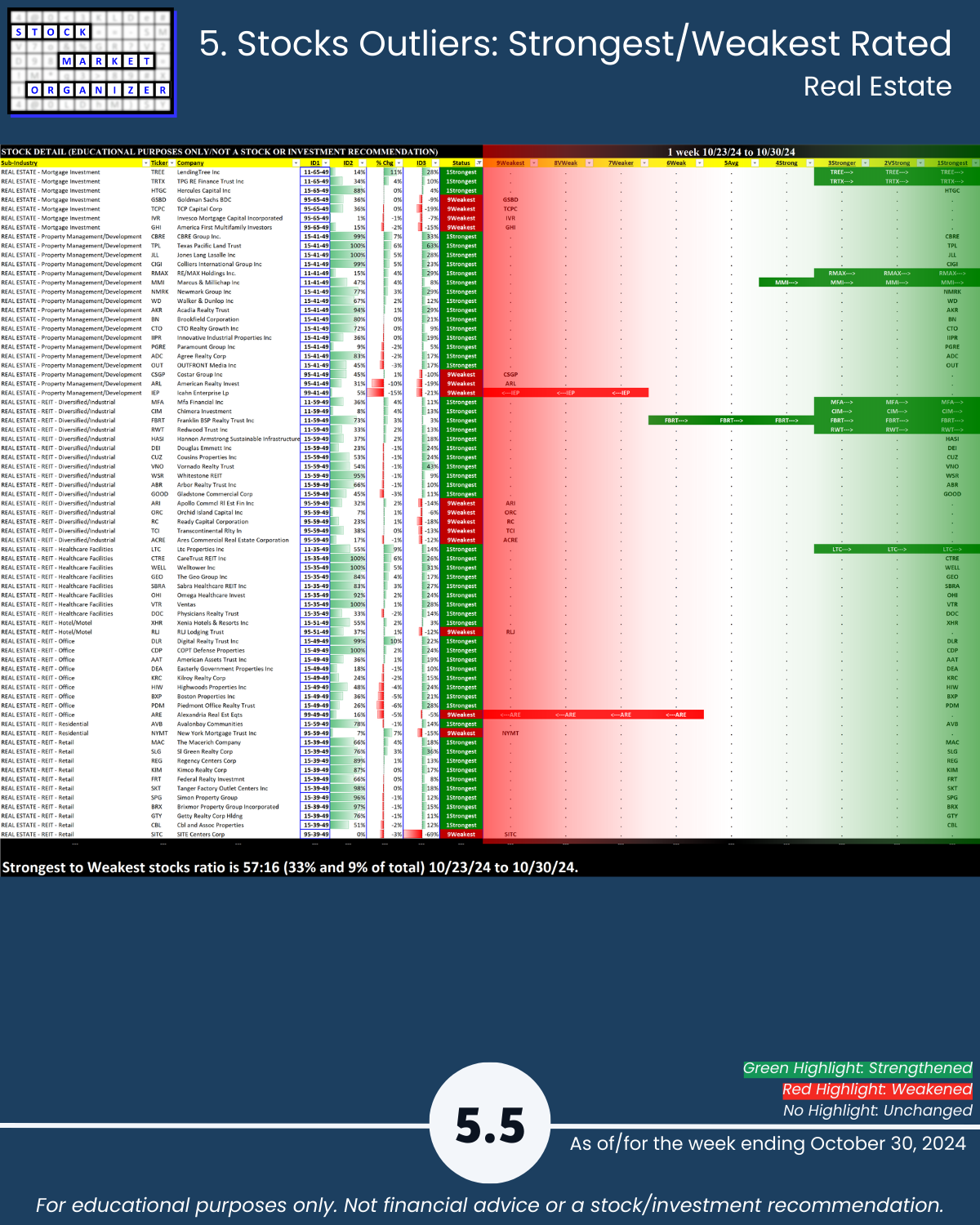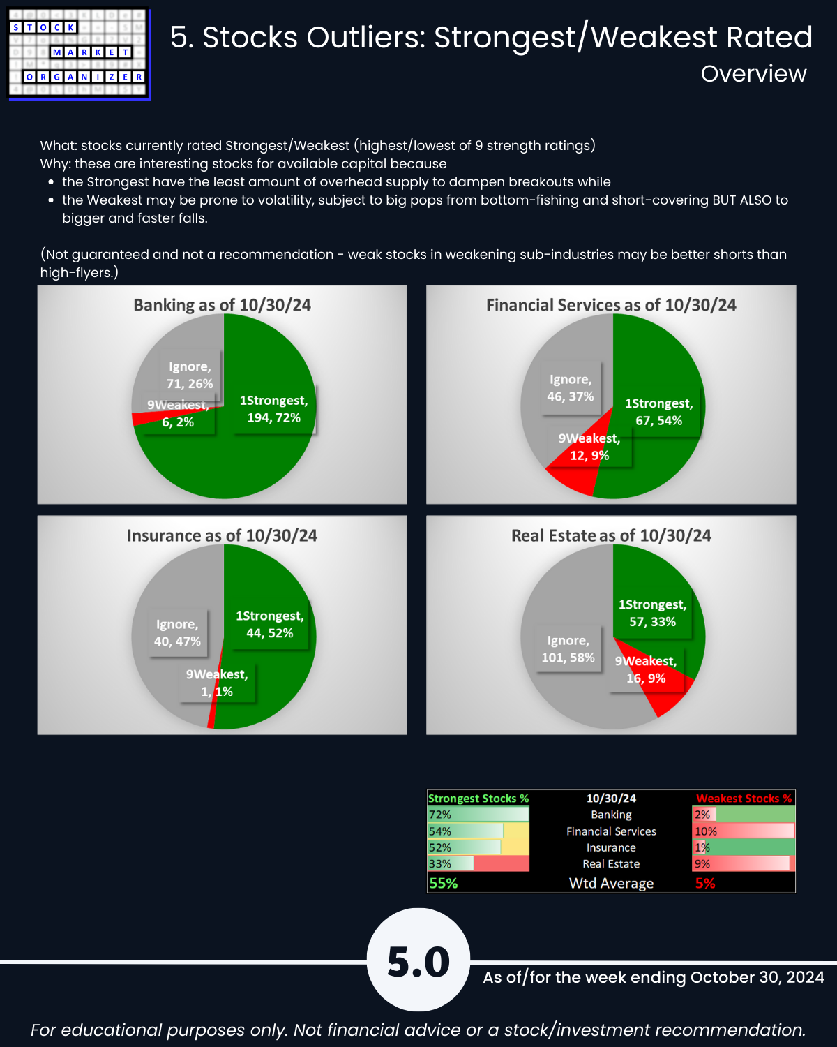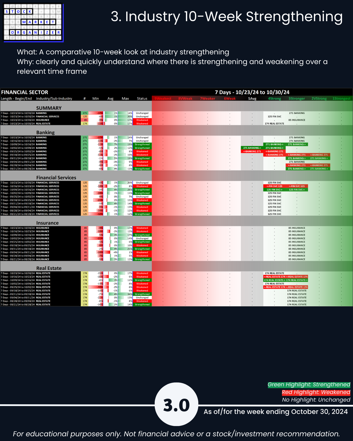 For the week ending Wednesday, October 30, 2024, all four industries were unchanged in terms of strength rating, though both Insurance and Real Estate did weaken (just not enough to affect the industry strength rating).