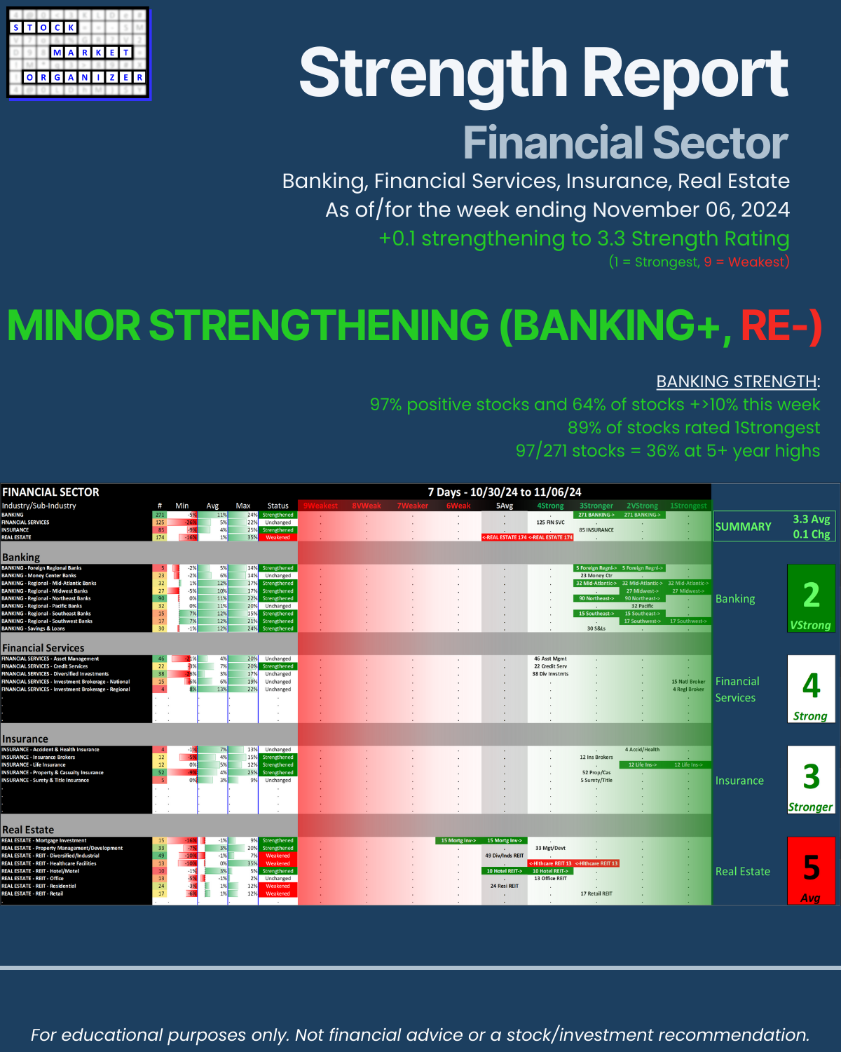 SMO Exclusive: Strength Report Financial Sector 2024-11-06 Strengthened +0.1 to 3.3 Strength Score