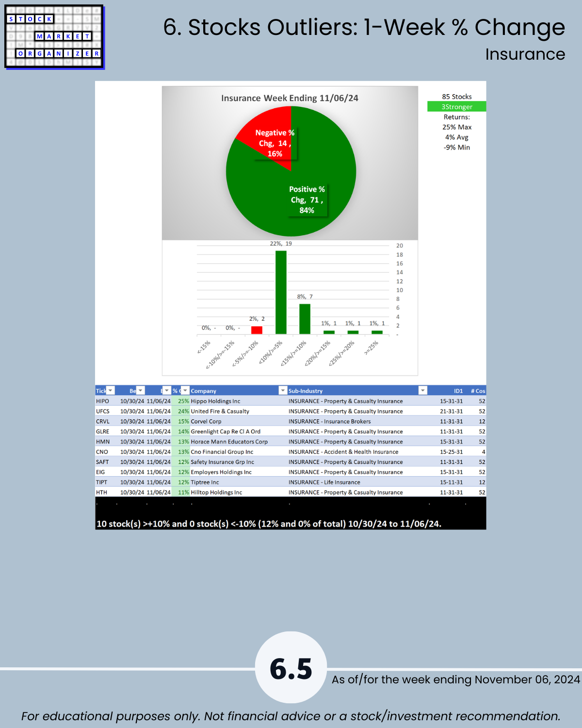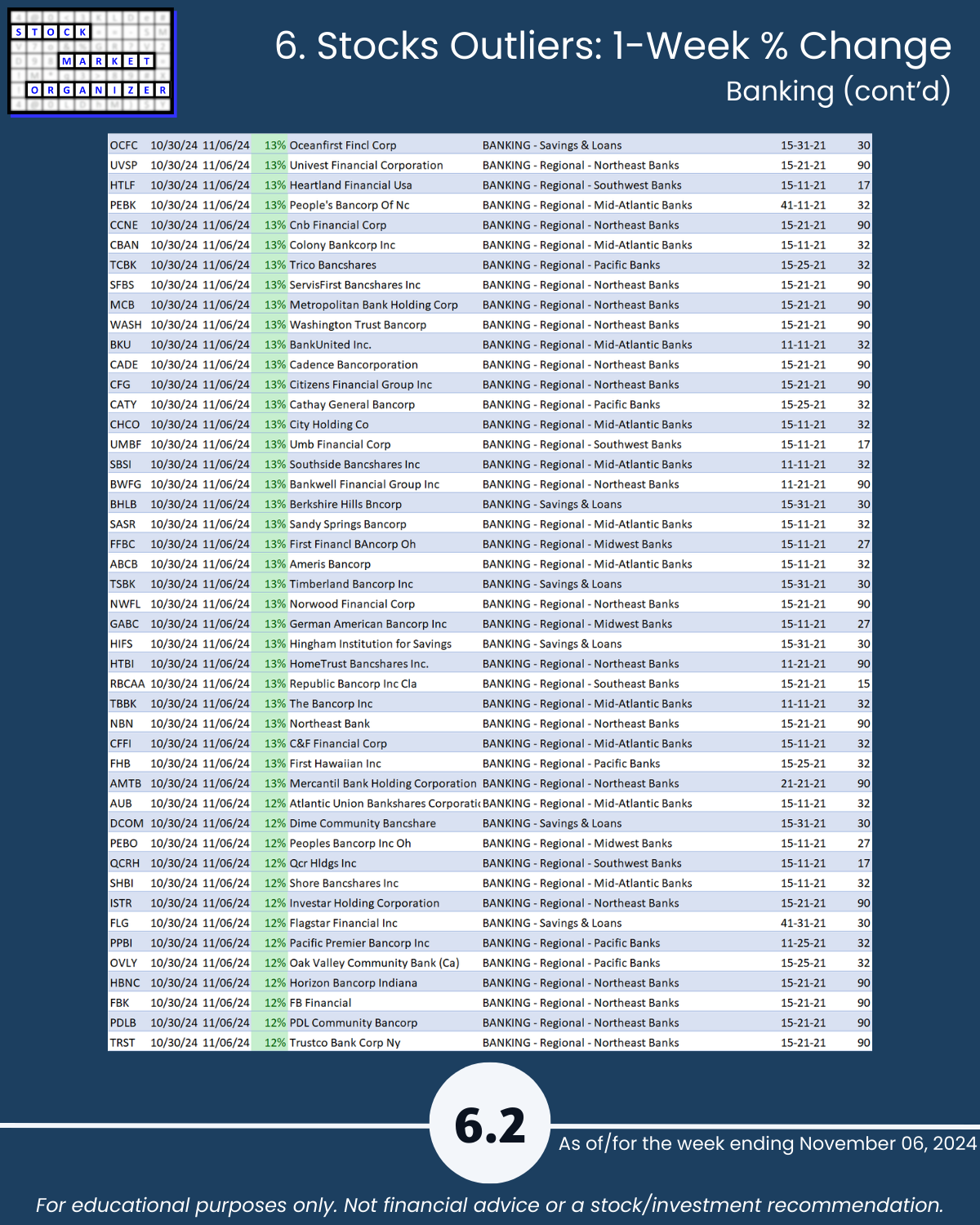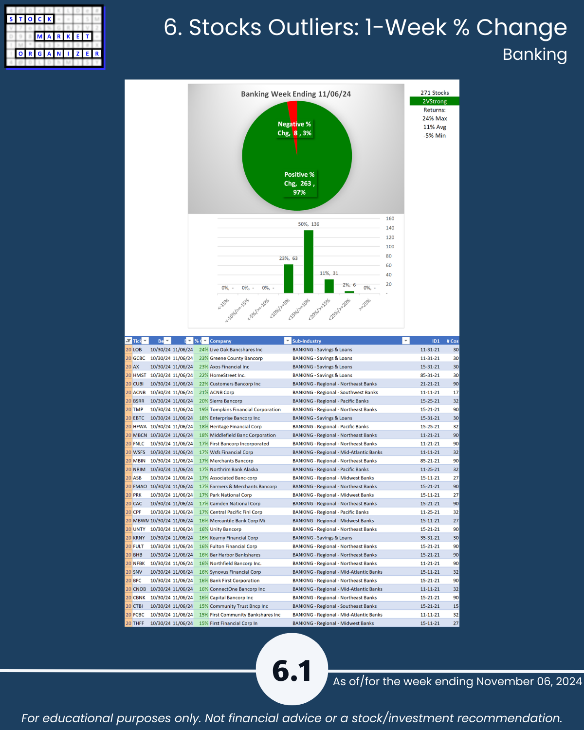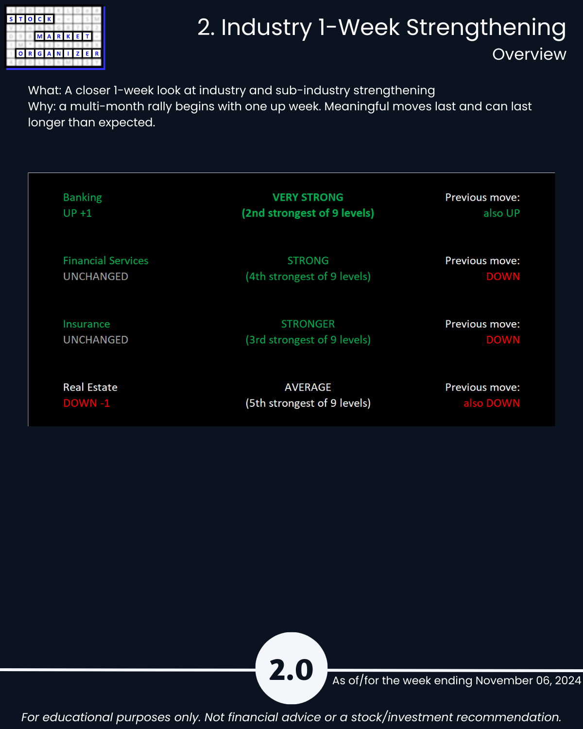 The Market Strength Score is now positive and, while the Financial Sector is flat over the past week per this analysis, Banking strengthened one level and Insurance strengthened but not enough to increase its strength rating.