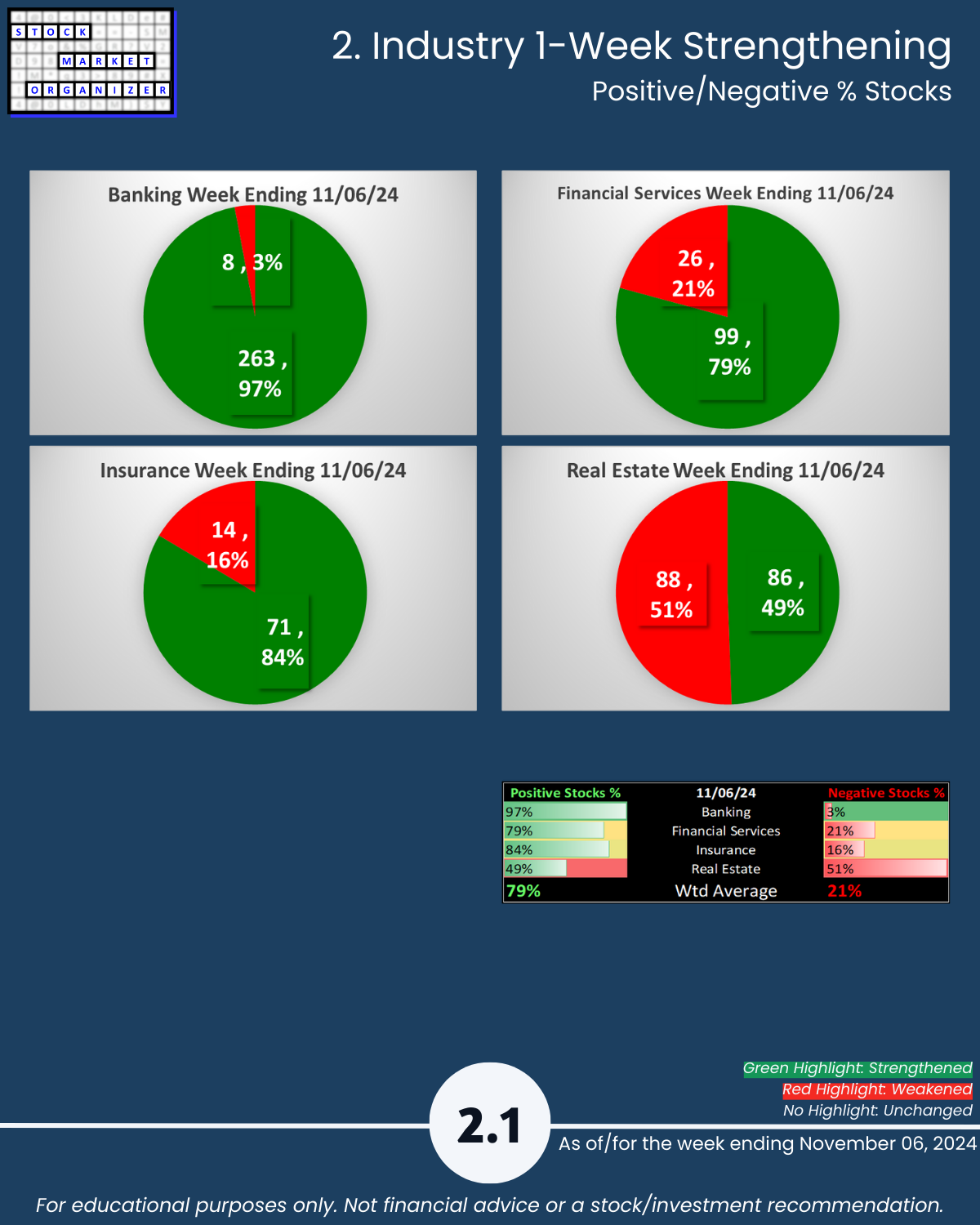 Financial Sector STRENGTHENED with a 3.3 composite score this week, +0.1 with a divergence between Banking which STRENGTHENED one level to 2VeryStrong as Real Estate WEAKENED one level to 5Average.