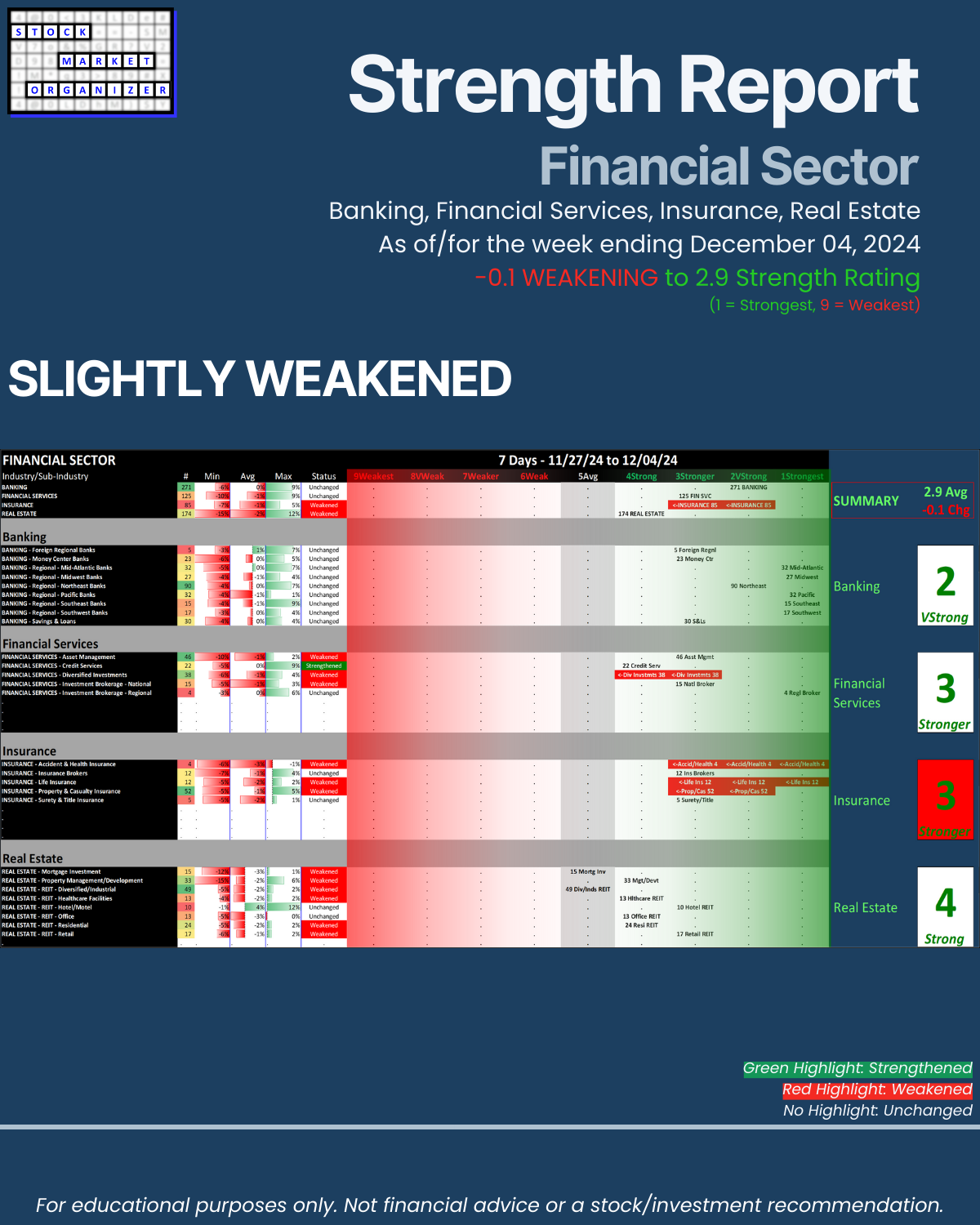 SMO Exclusive: Strength Report Financial Sector 2024-12-04 Weakened -0.1 to 2.9 Strength Score