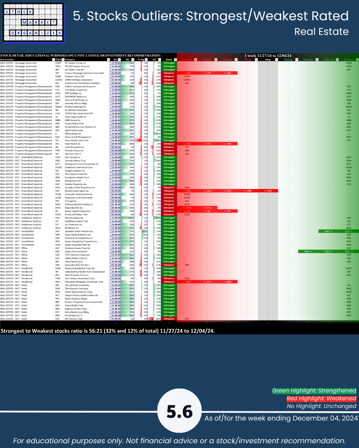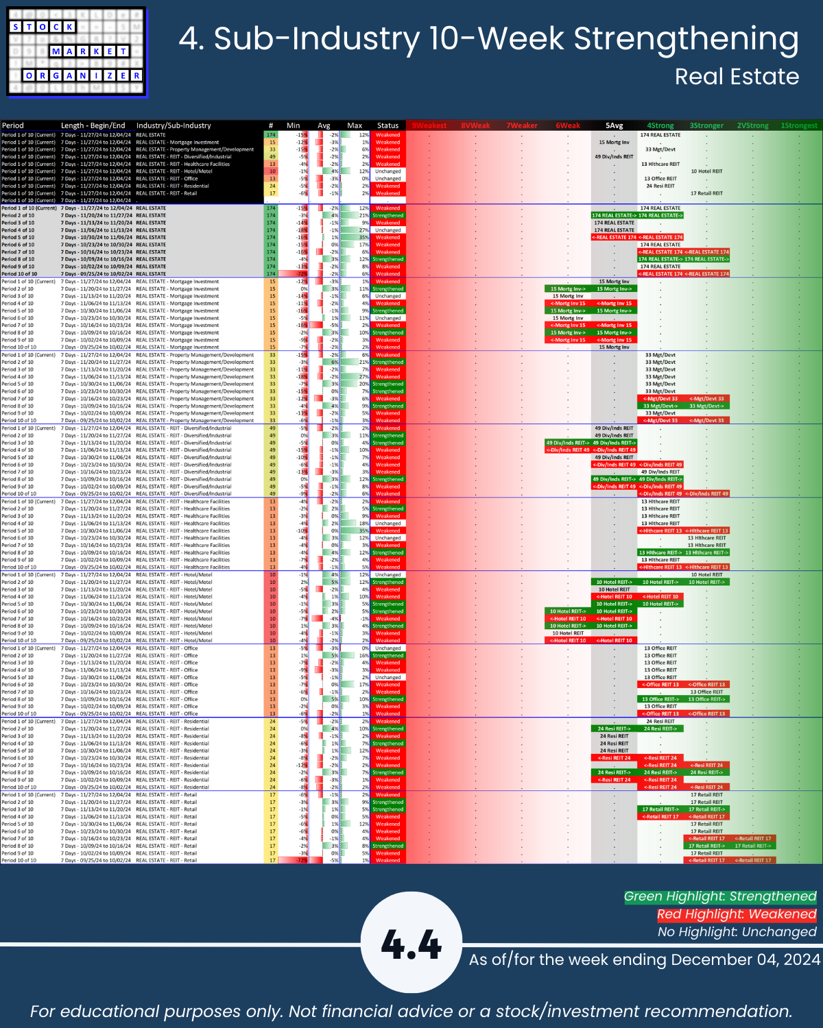 - Real Estate weakened but not enough to change rating and retains a 4Weak rating = neutral/headwind