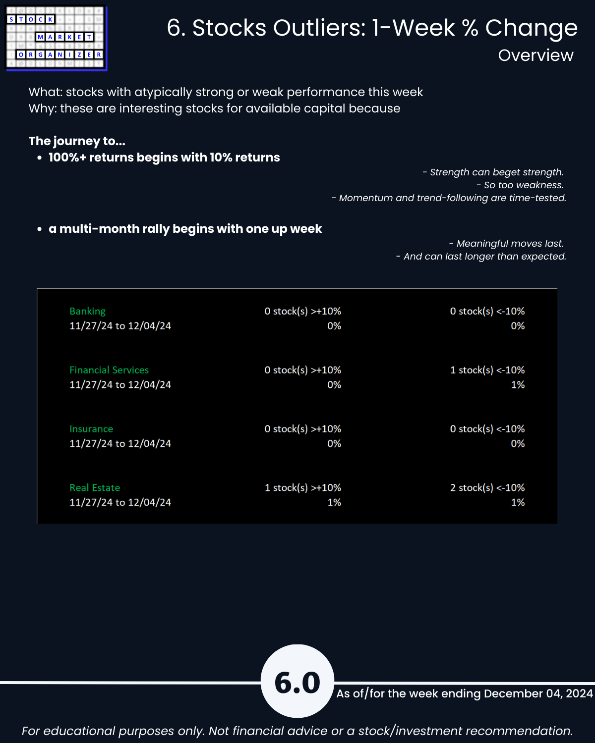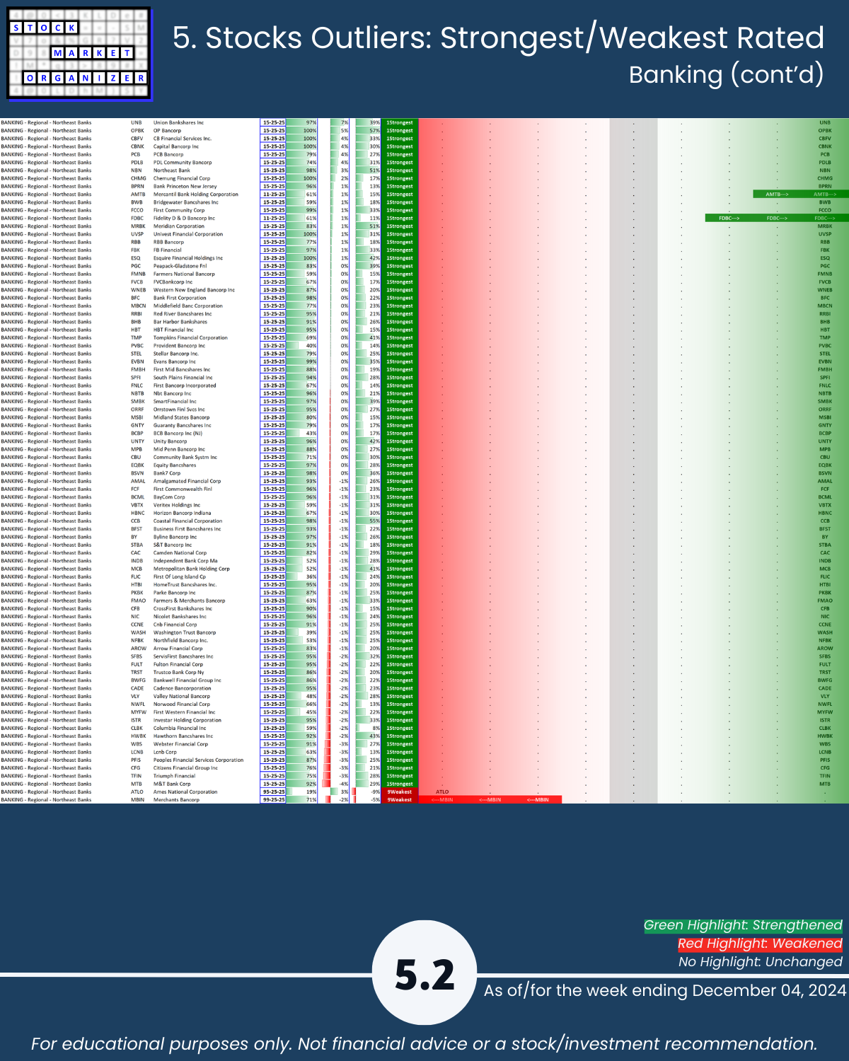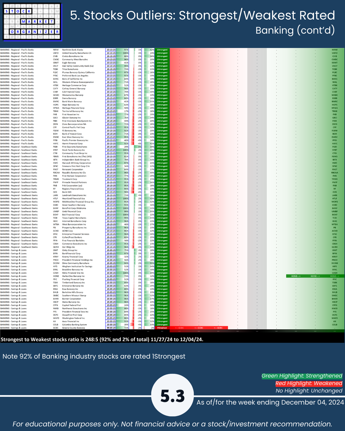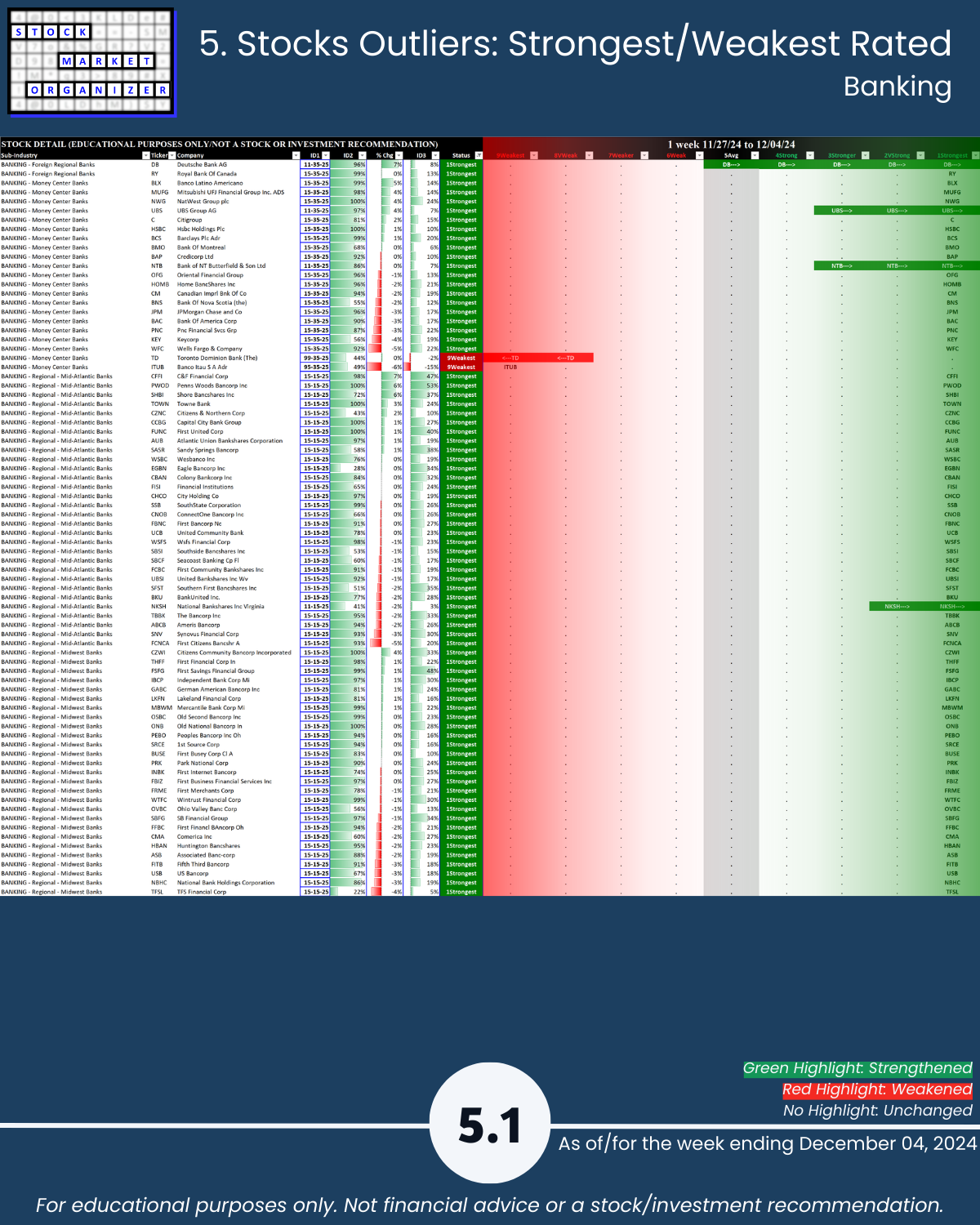 - SECTOR: The Financial sector was flat/slightly weakened for the week but has a strong 2.9 overall rating = Tailwind/Neutral