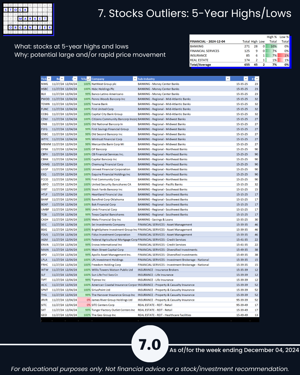 This section shows the strongest of the strong and the weakest of the weak, hitting 5-year highs and lows, respectively. The strongest are the leaders of the market that is hitting new highs. Meanwhile, there appears to be no rational reason to hold weak stocks that are at multi-year lows despite massive market tailwinds.