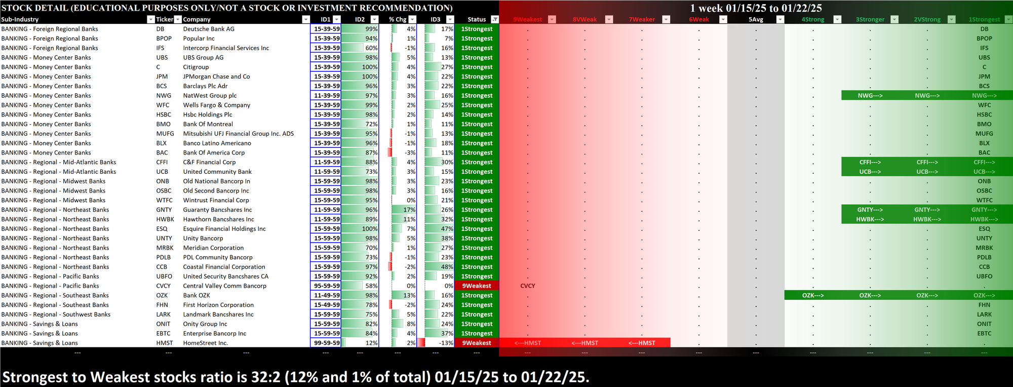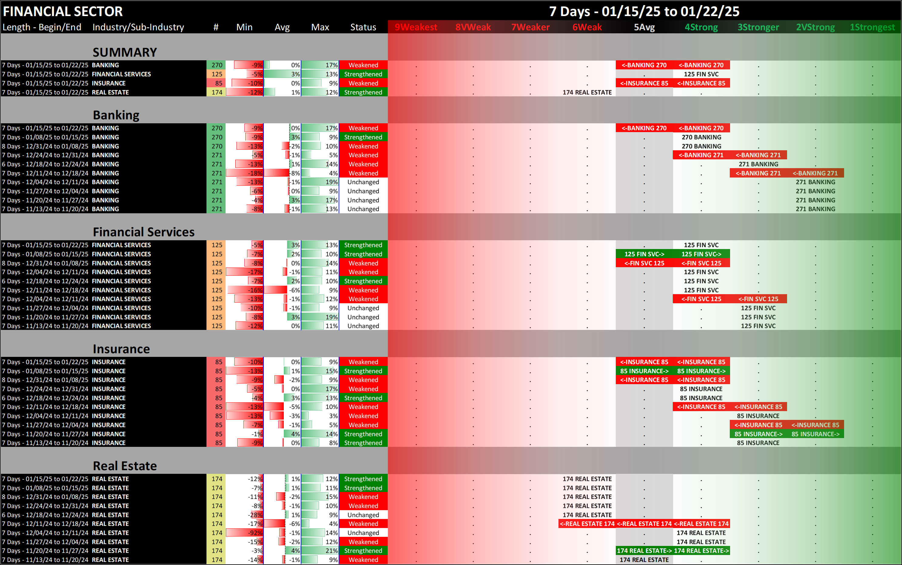SMO Exclusive: Strength Report Financial Sector 2025-01-22 Weakened -0.5 to 5.1 Strength Score