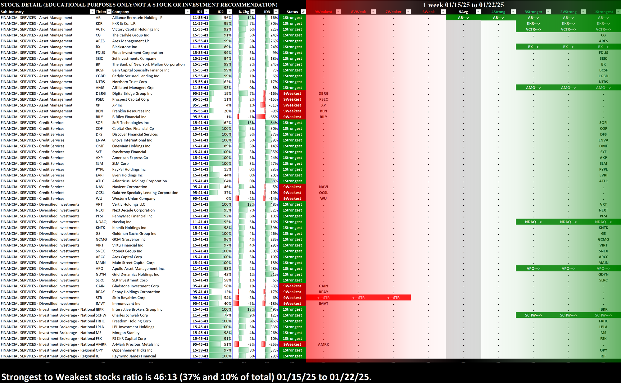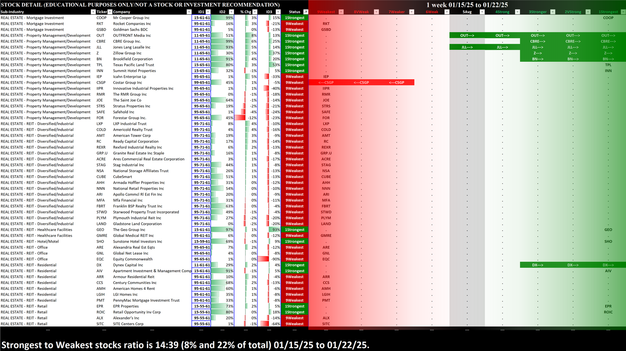 What: stocks currently rated Strongest/Weakest (highest/lowest of 9 strength ratings)