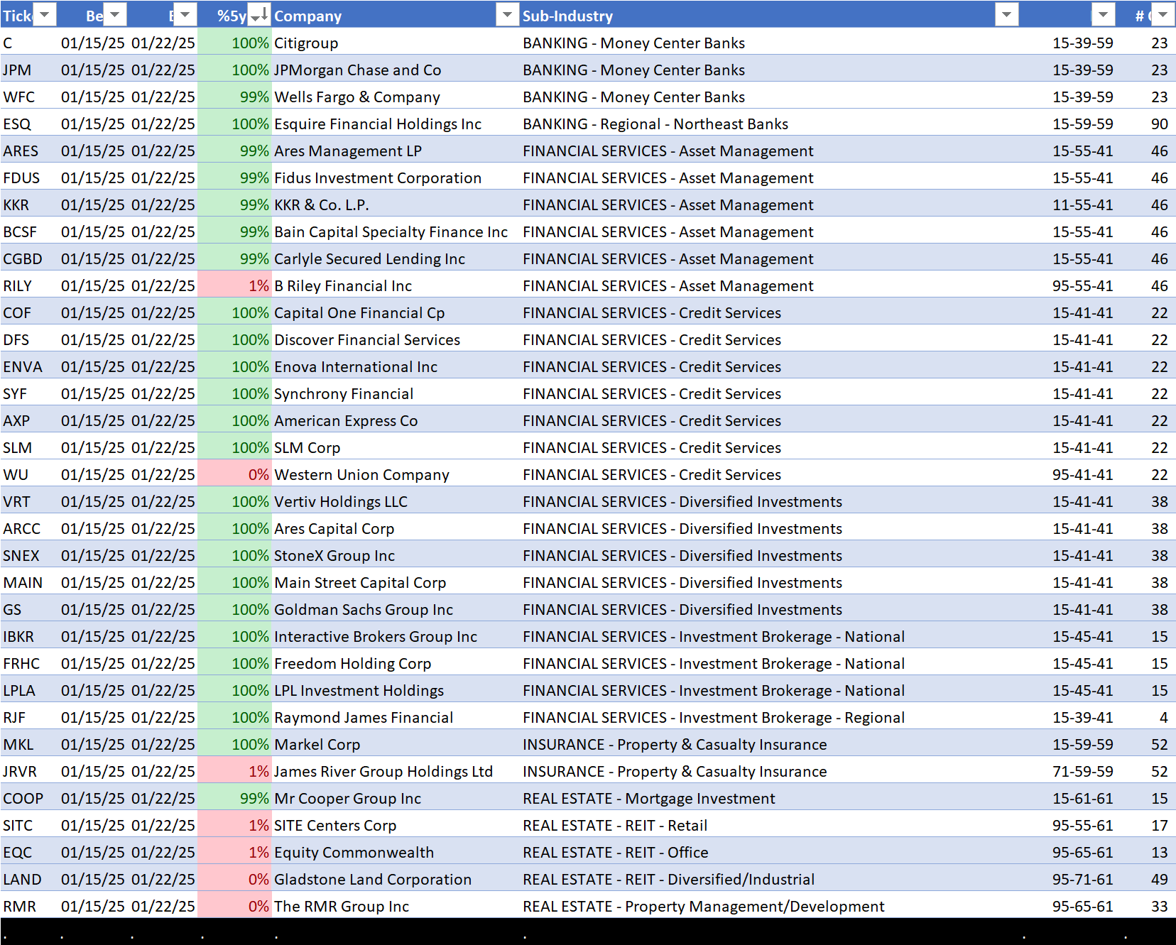 - Credit Services (22 stocks)
