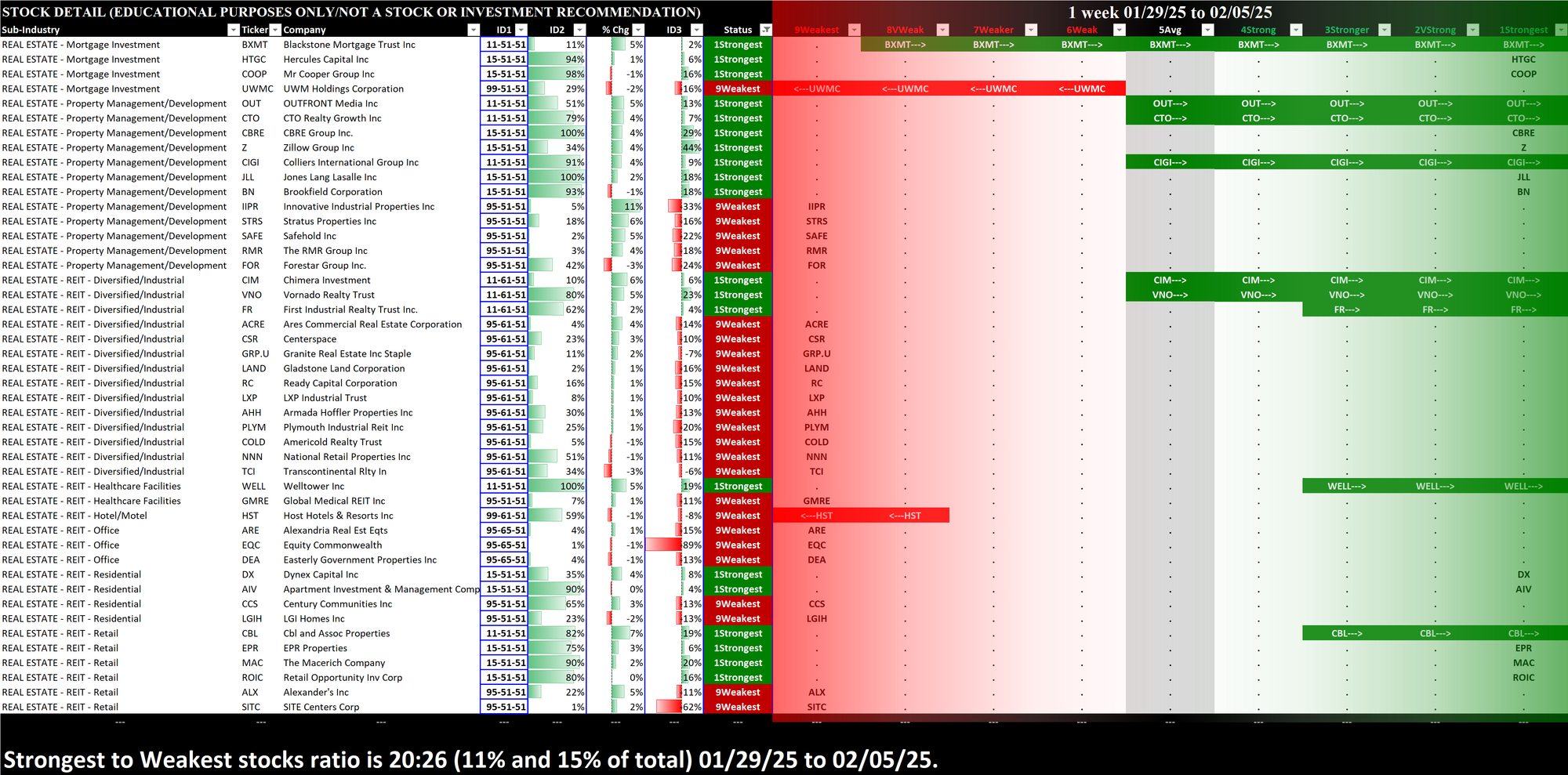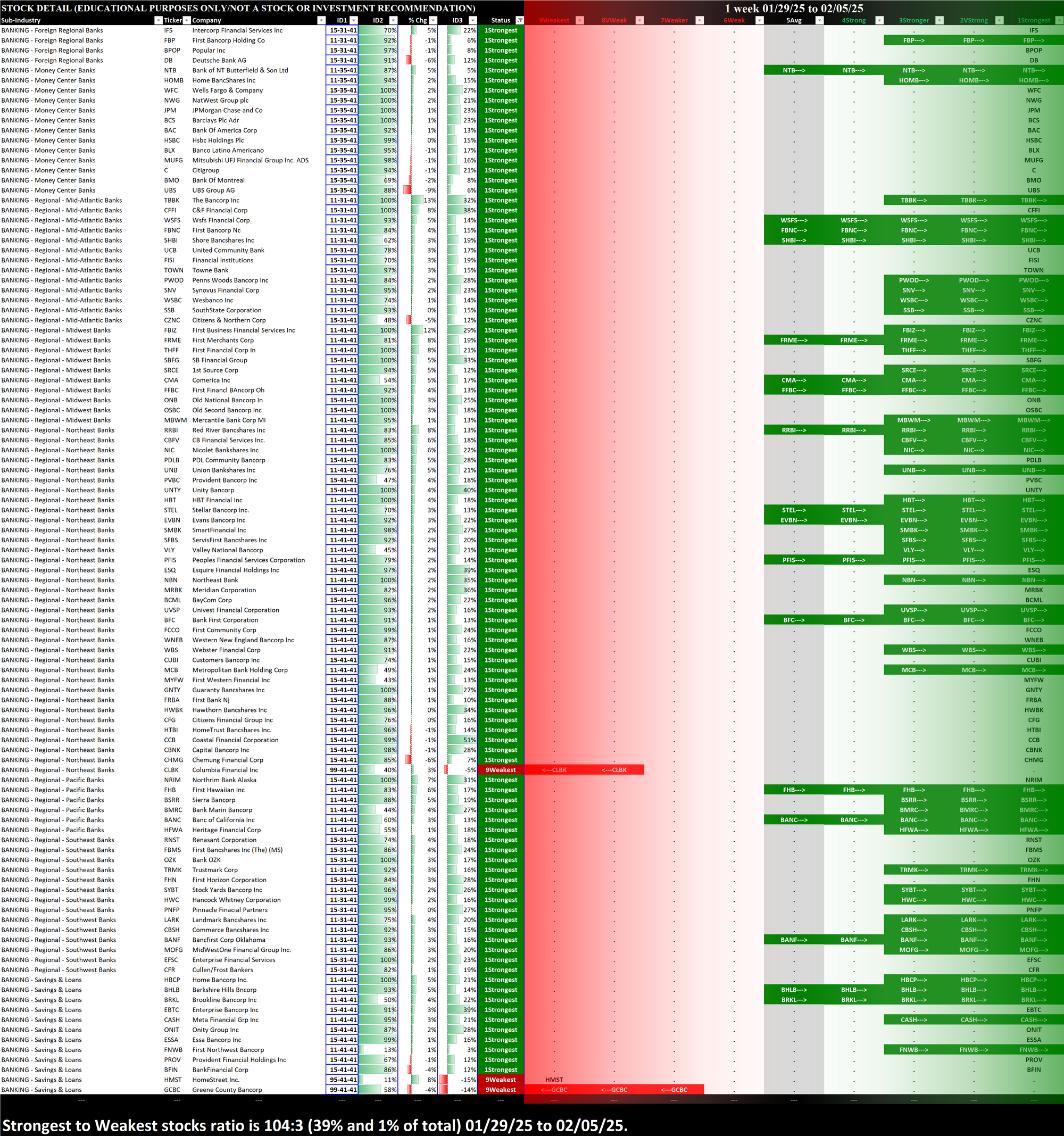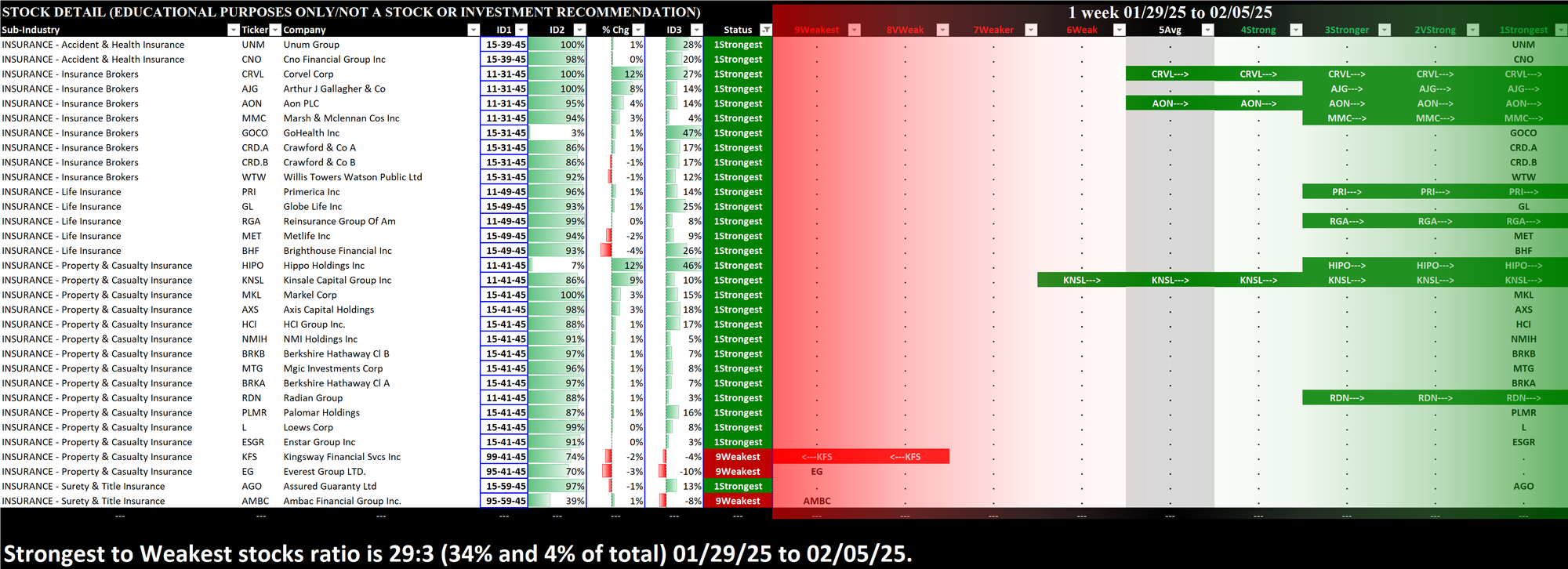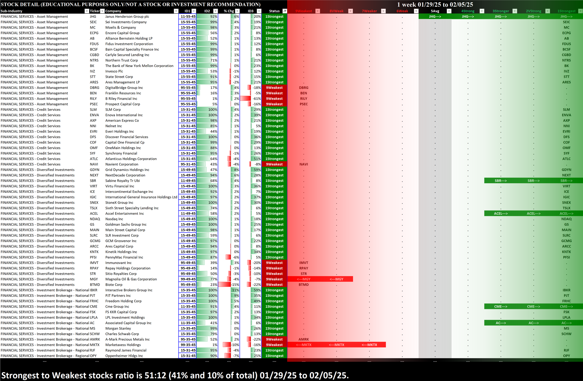 The Financial sector strengthened this week, rising by +0.3 points to a 4.3 overall rating. If at all interested in positions in this sector, it is better to go where there is strength/strengthening - as reflected by price. This Stock Market Organizer methodology explicitly reveals this.