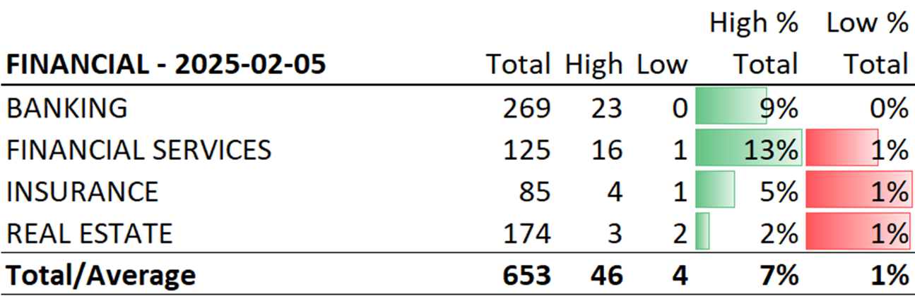 SMO Exclusive: Strength Report Financial Sector 2025-02-05 Strengthened +0.3 to 4.3 Strength Score