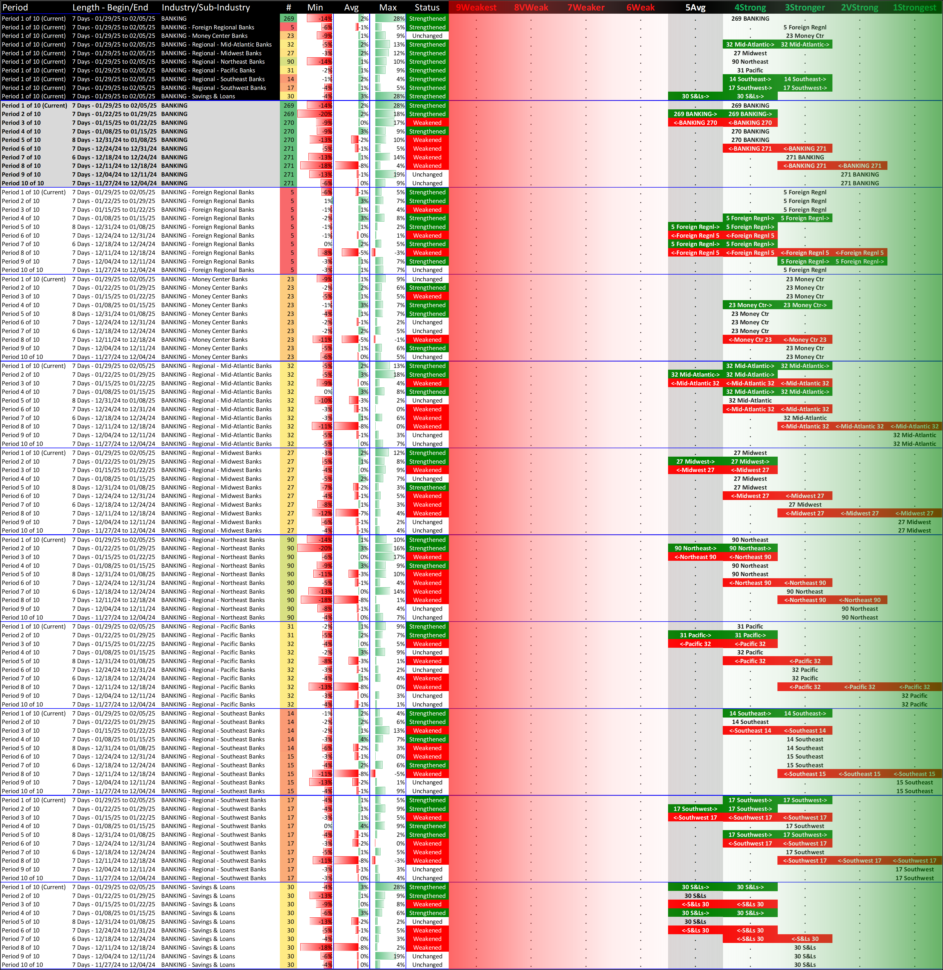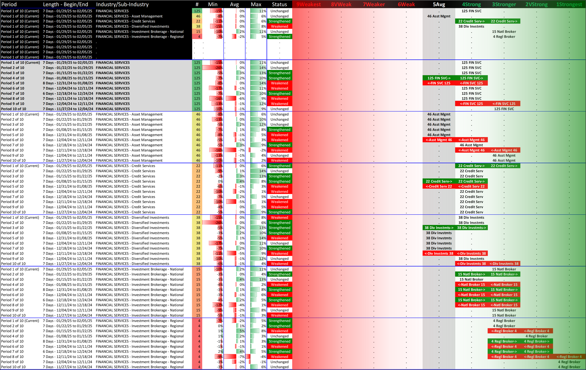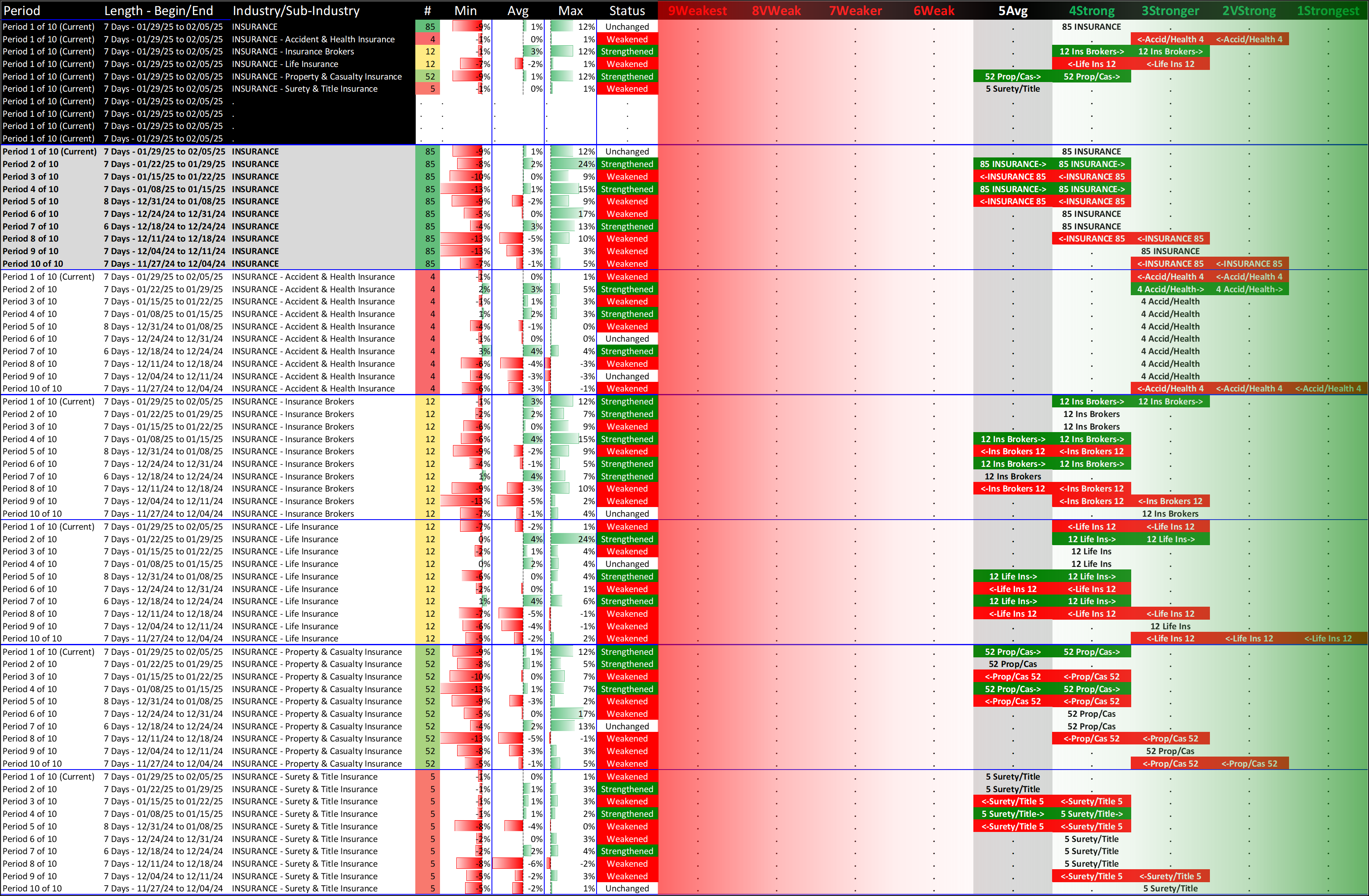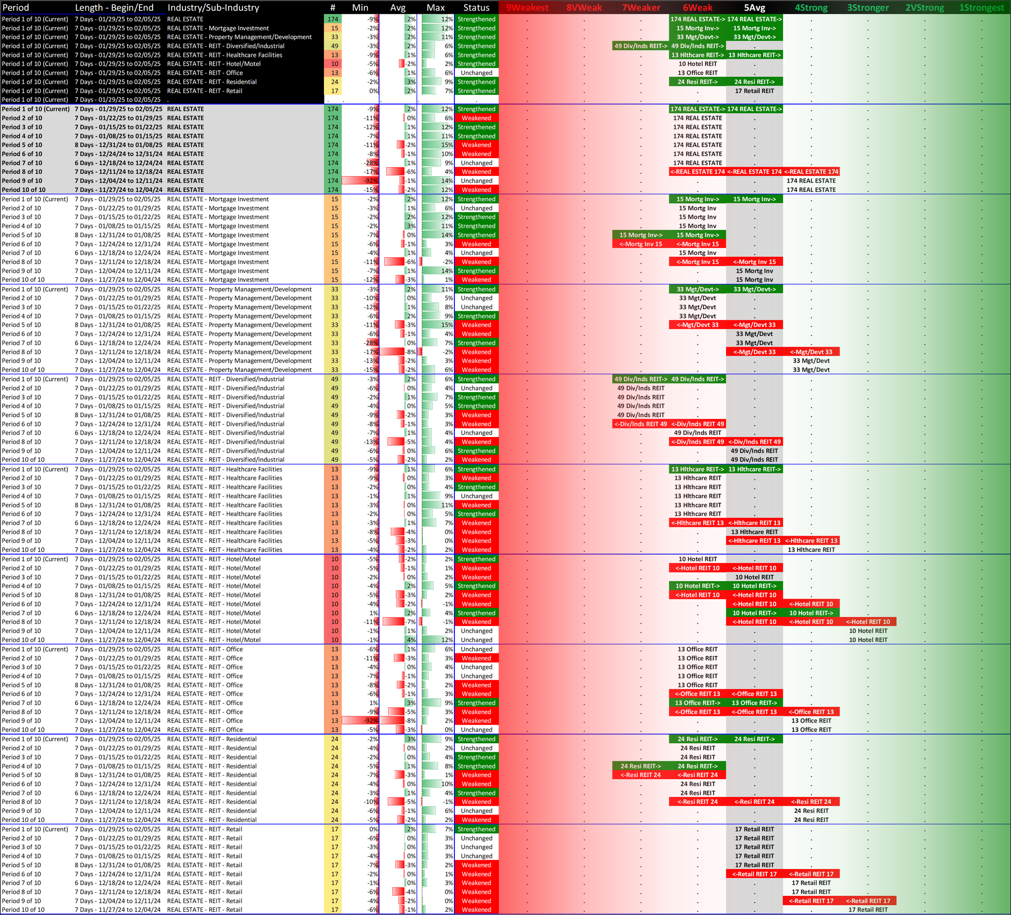 What: recent week-by-week strength changes for the industry and its sub-industries