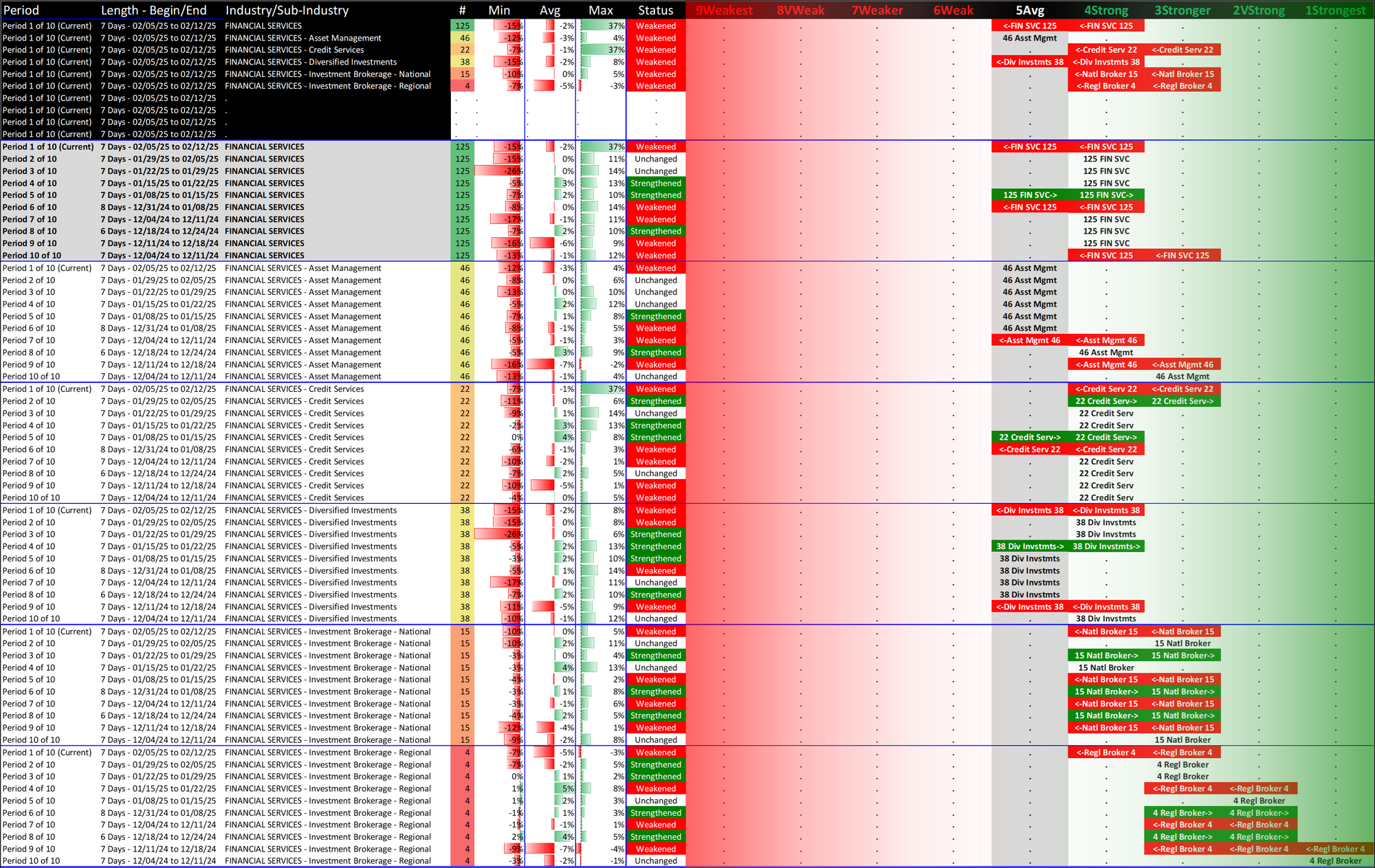 SMO Exclusive: Strength Report Financial Sector 2025-02-12 Weakened -0.6 to 4.9 Strength Score