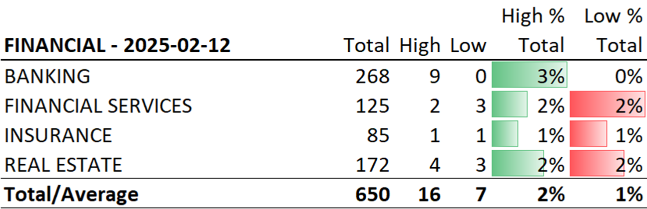 SMO Exclusive: Strength Report Financial Sector 2025-02-19 Strengthened +0.6 to 4.3 Strength Score