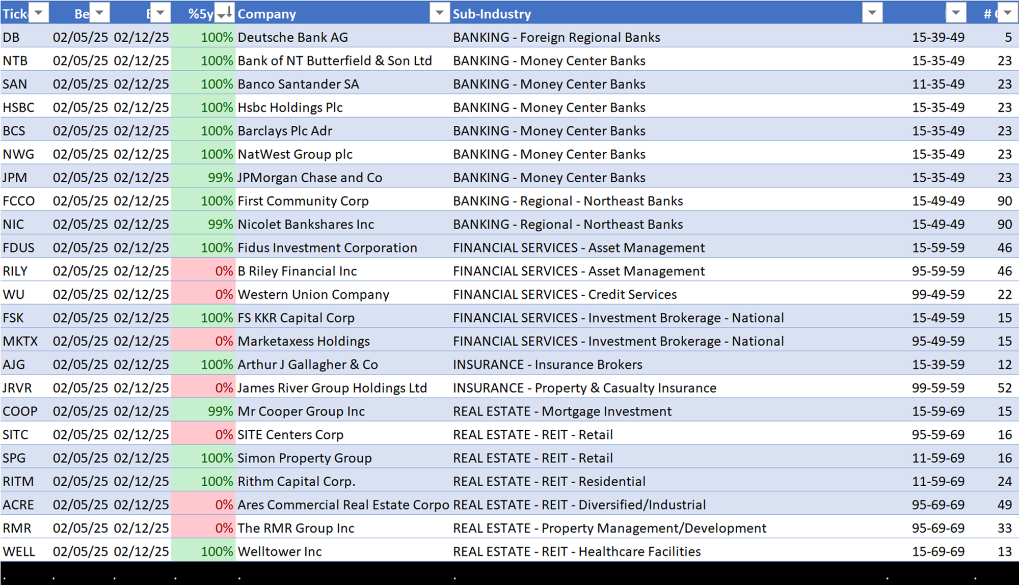 - Savings & Loans (30 stocks)
