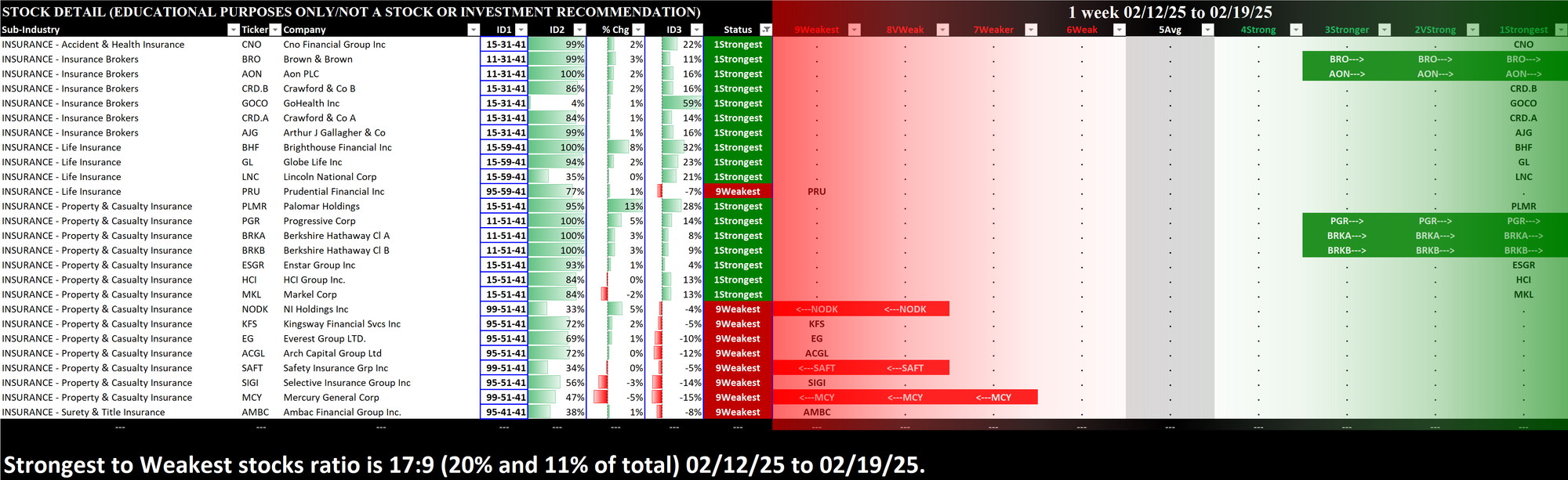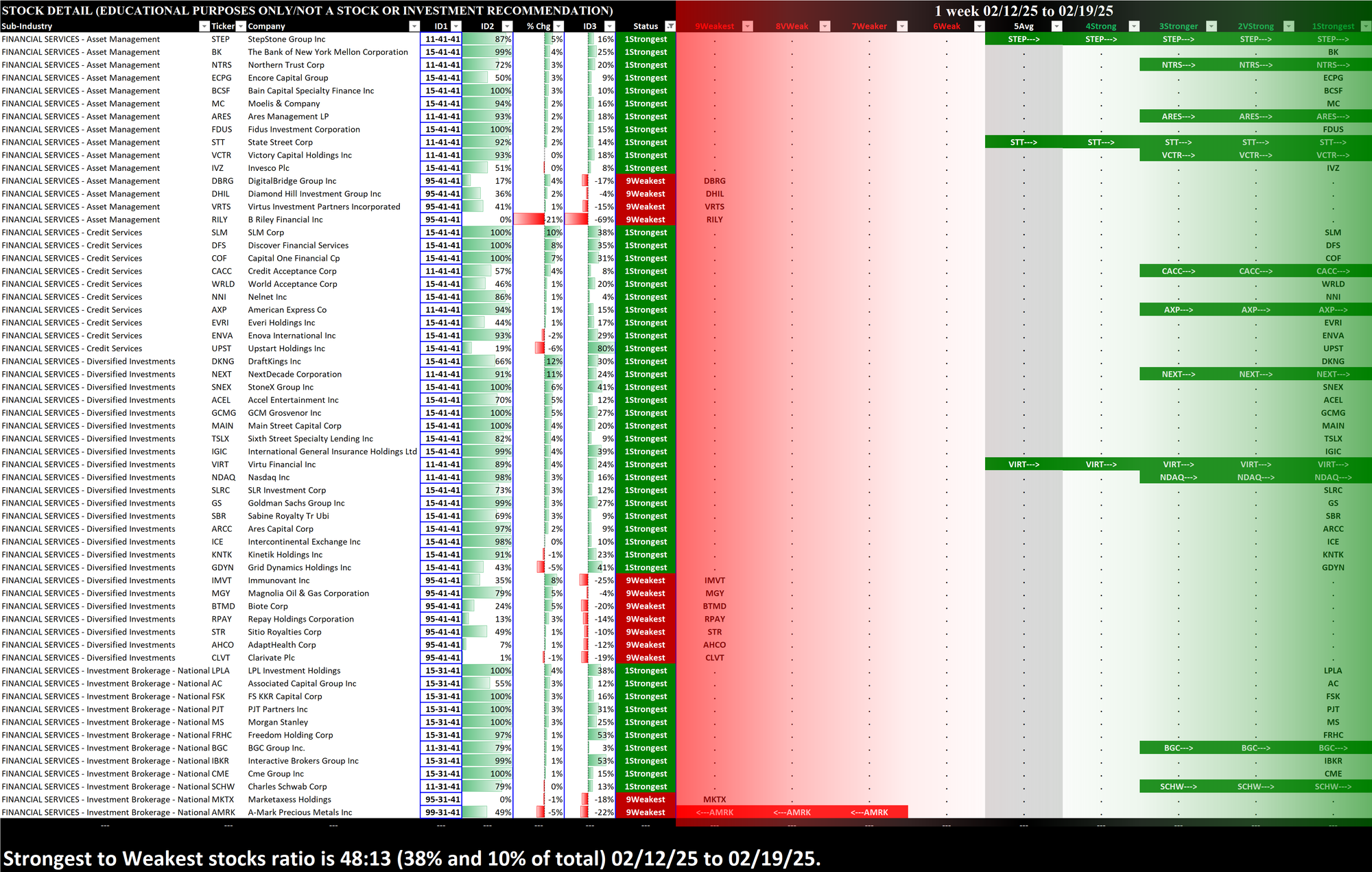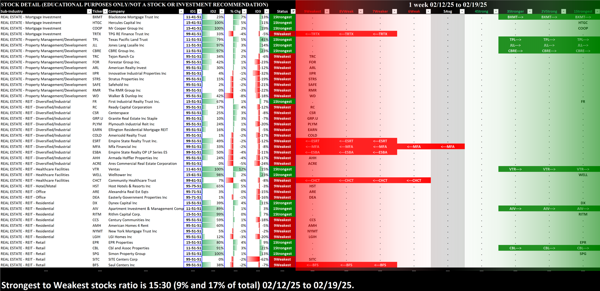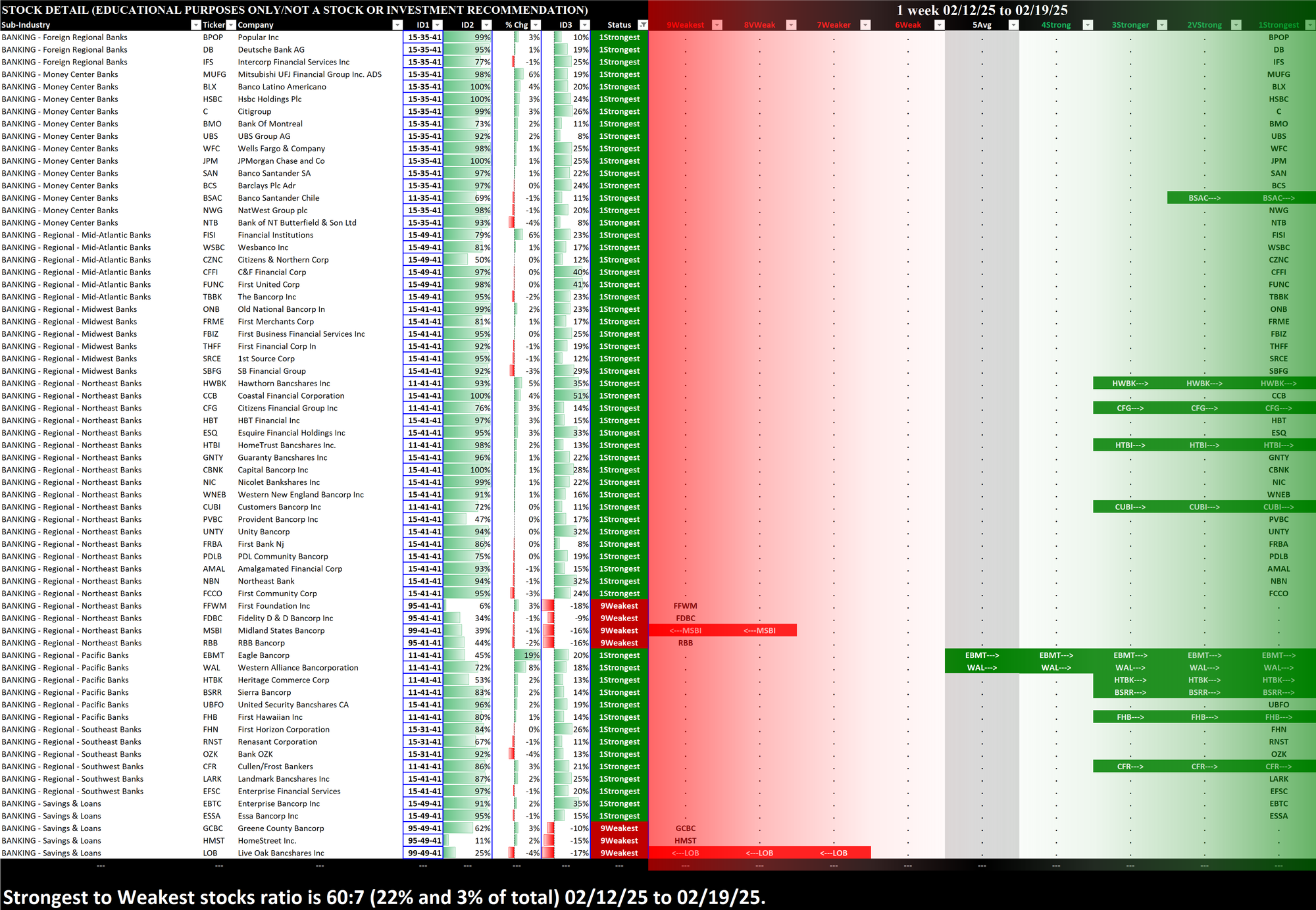 What: stocks currently rated Strongest/Weakest (highest/lowest of 9 strength ratings)
