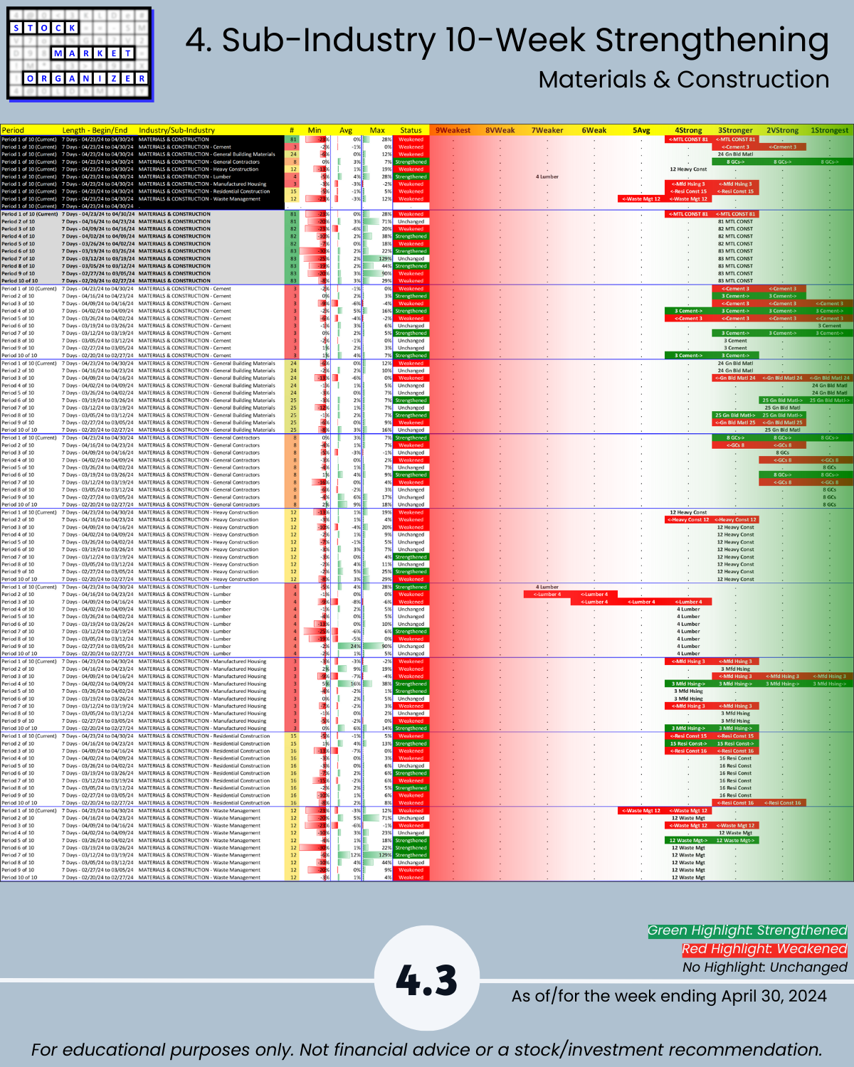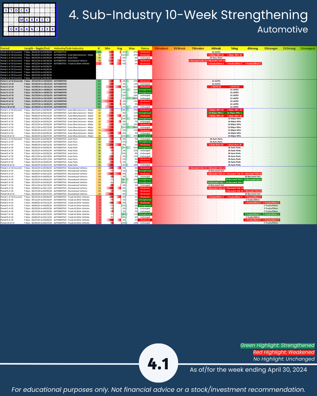 4. Sub-Industry 10-Week Strengthening