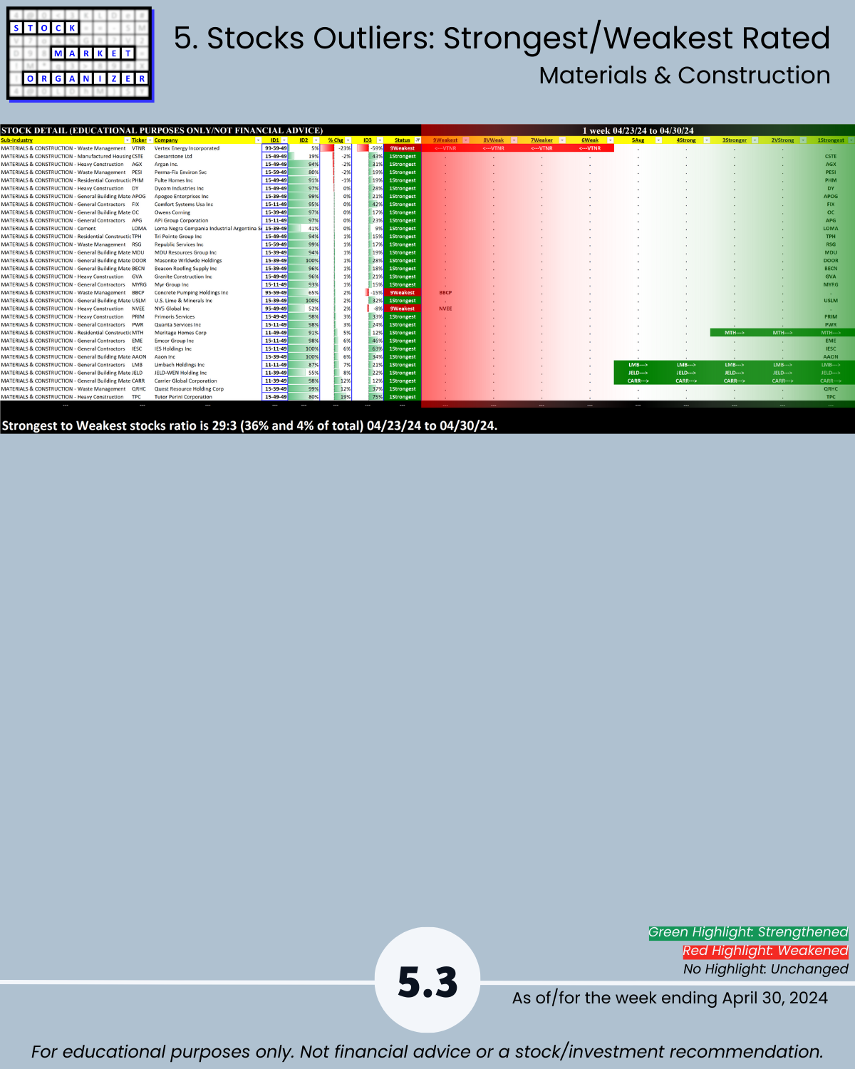 5. Stocks Outliers: Strongest/Weakest Rated