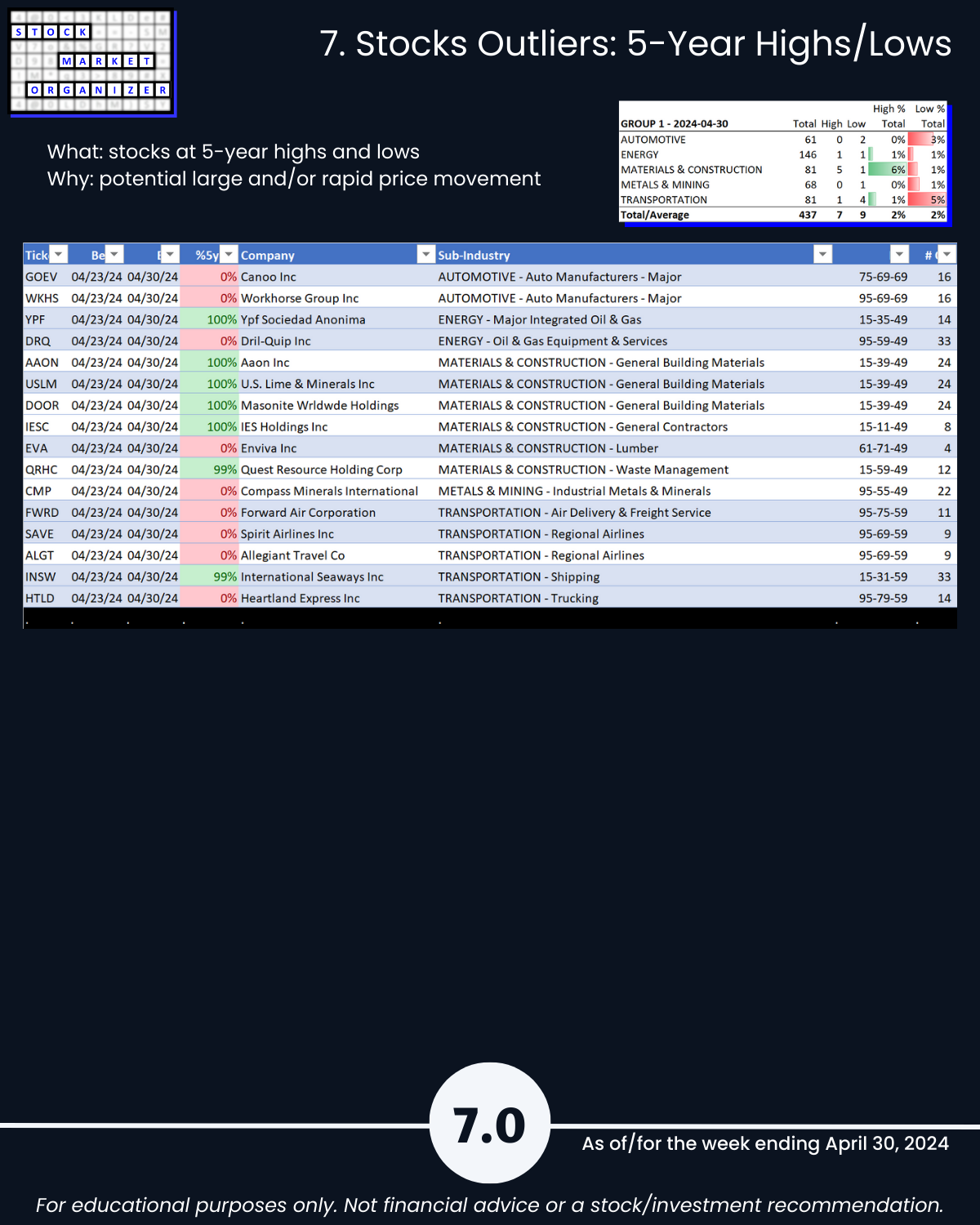 7. Stocks Outliers: 5-Year Highs/Lows