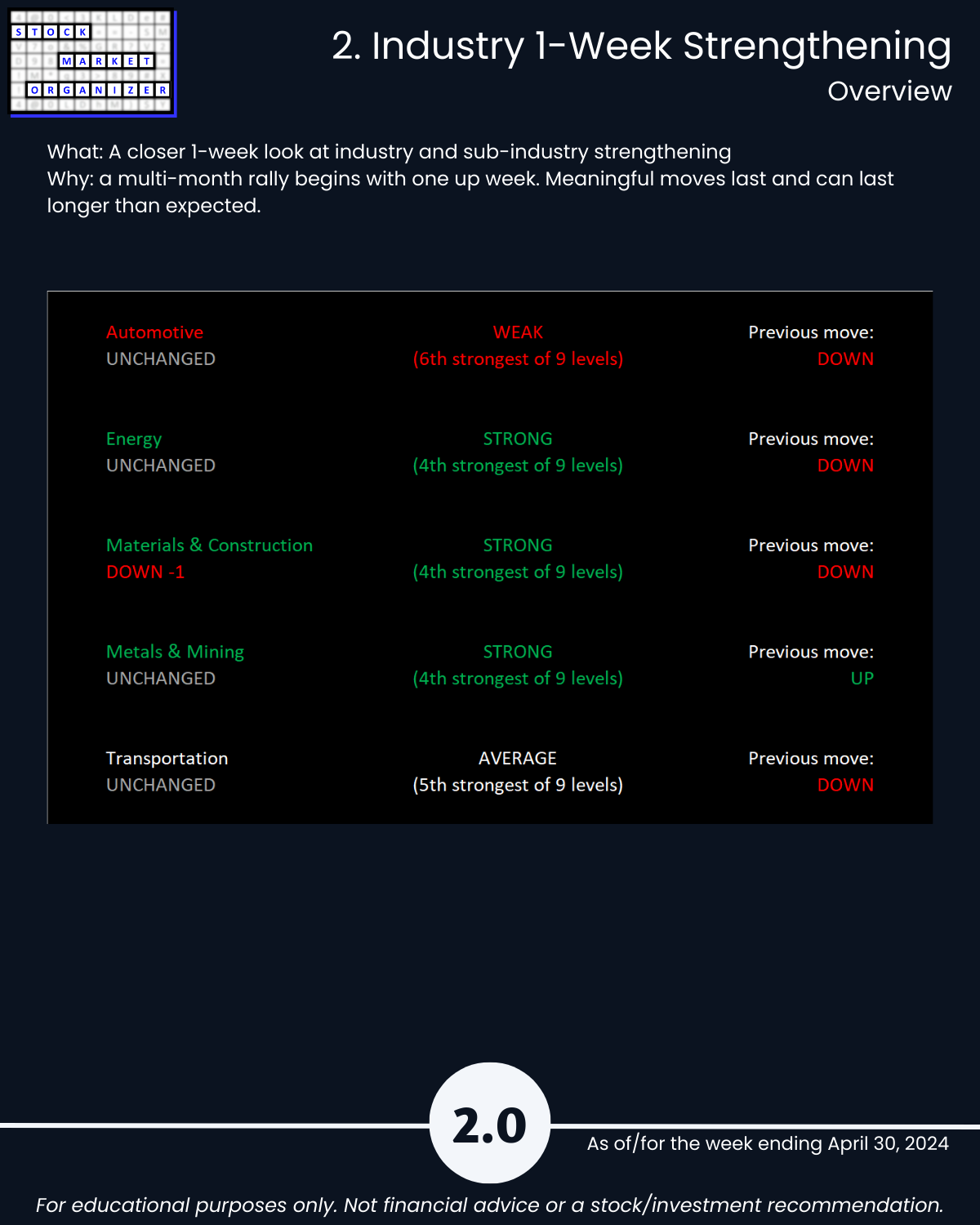 2. Industry 1-Week Strengthening