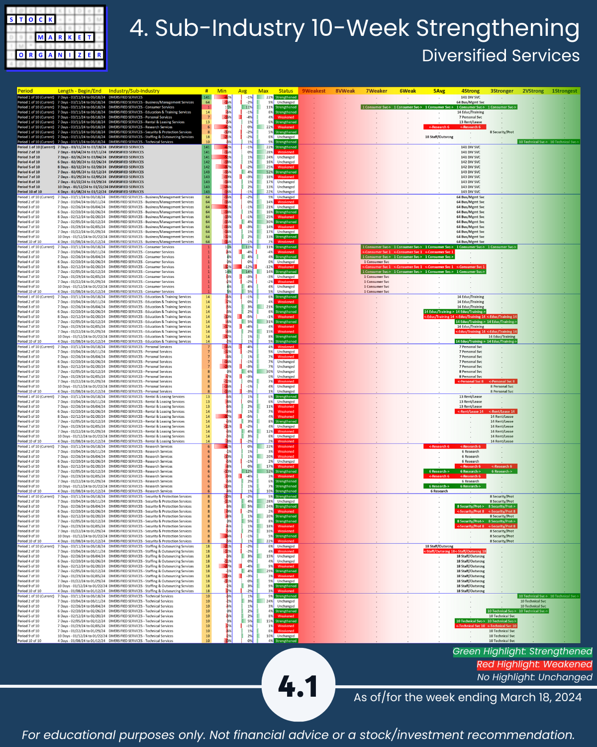 ๐น Strongest Industry: Diversified Serv (Strong, 4th strongest of 9 levels)
