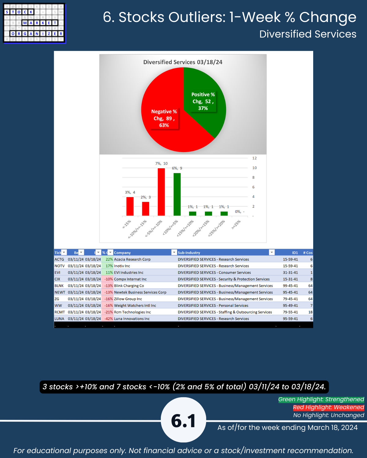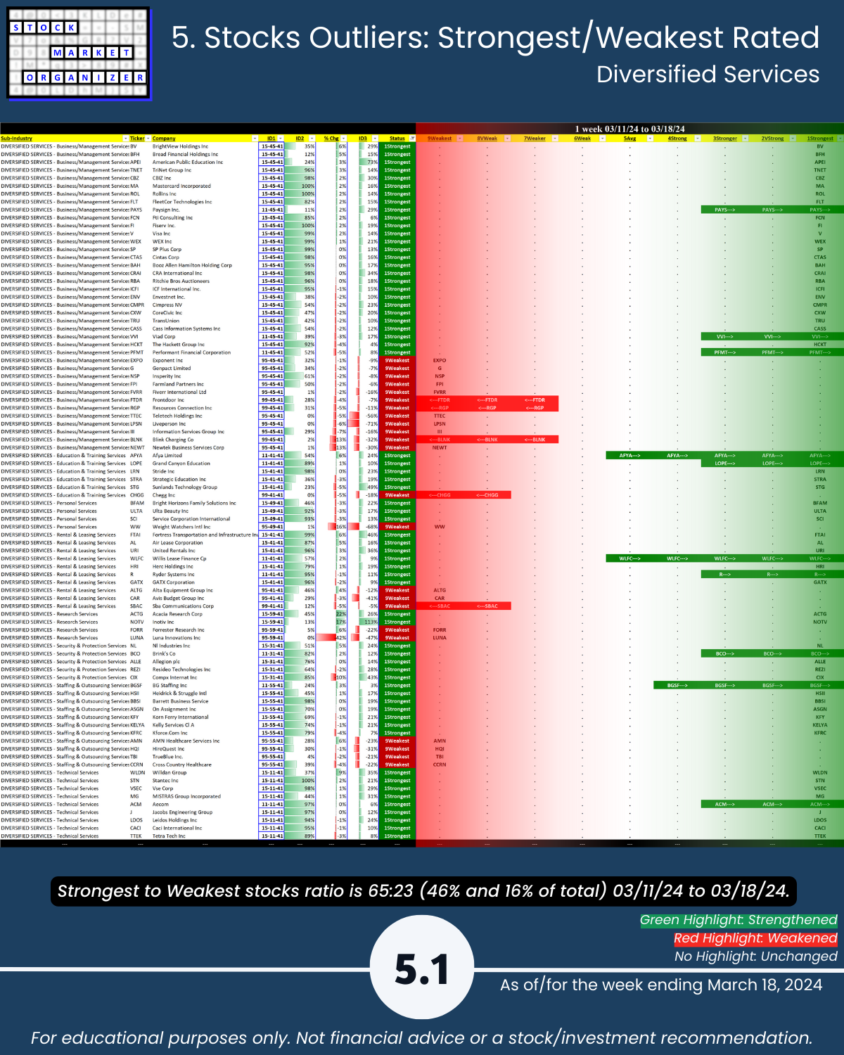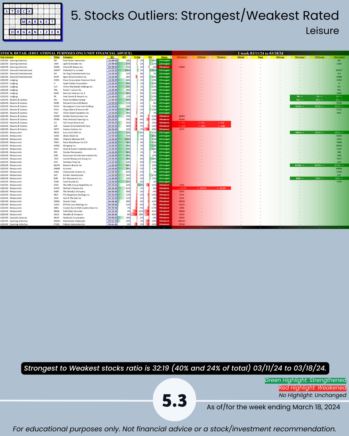 ๐น Stocks rated Strongest:Weakest: Diversified Serv 46%:16%, Leisure 40%:24%, Utilities 8%:54%
