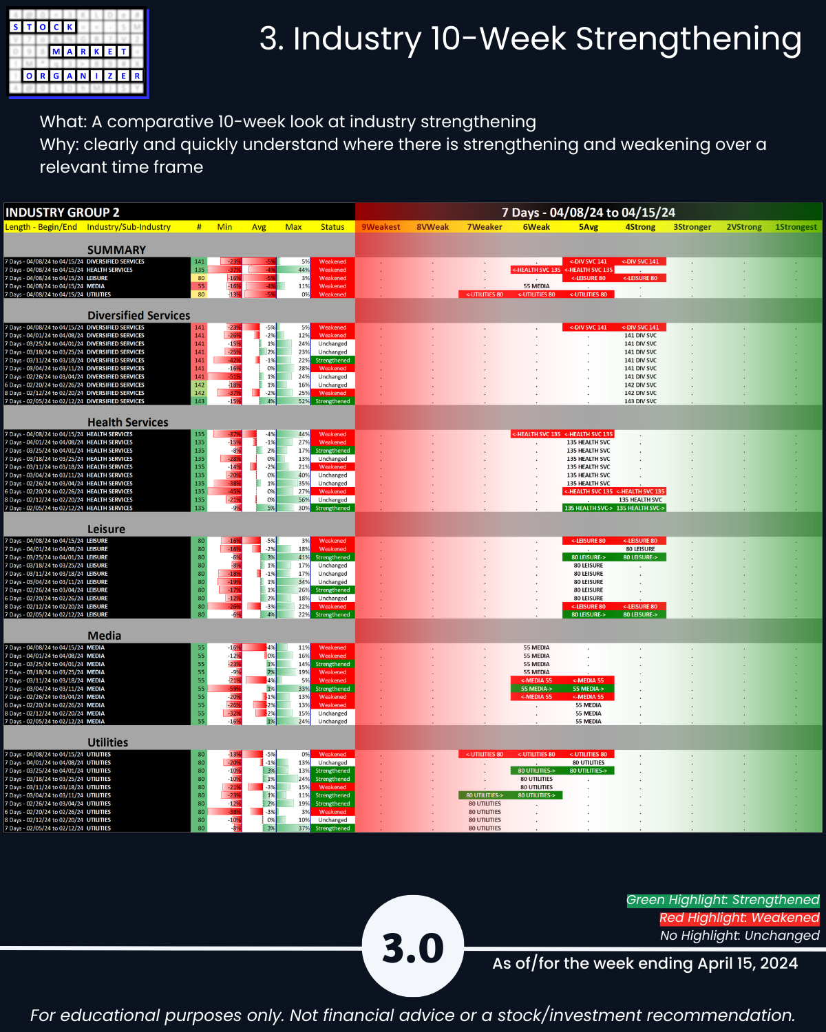 🔹 Industry Strength Level Changes: Diversified Services, Health Services, Leisure, Utilities WEAKENED