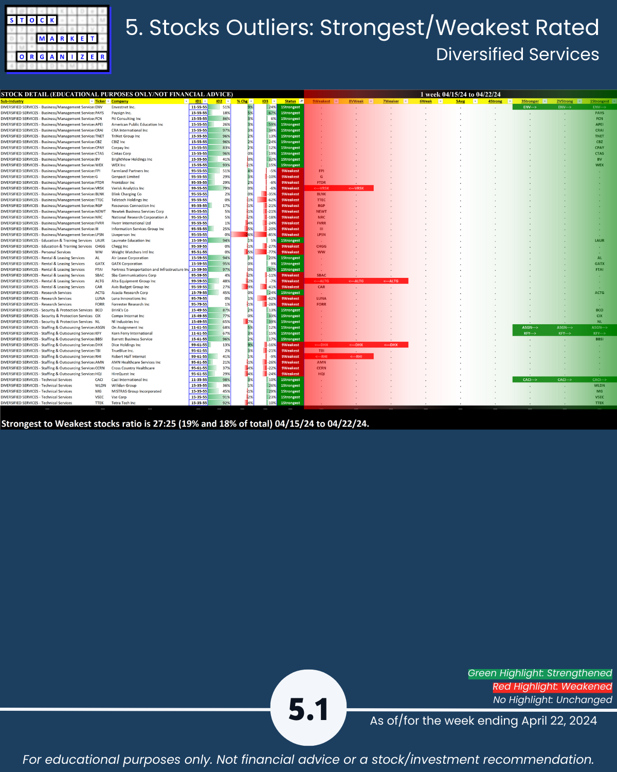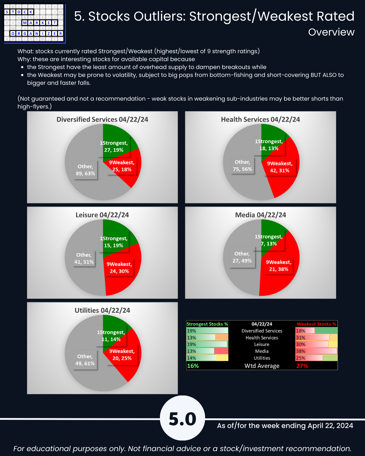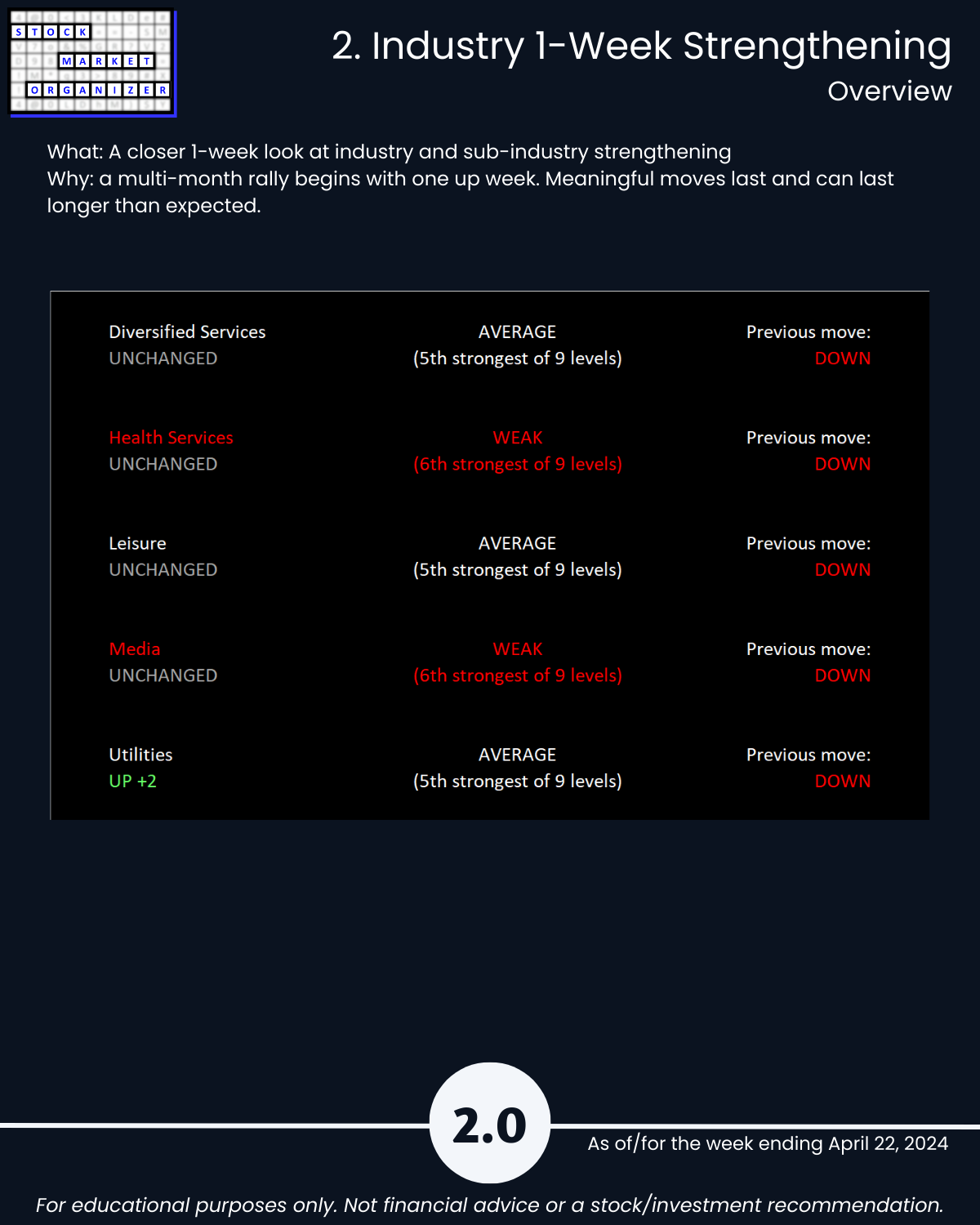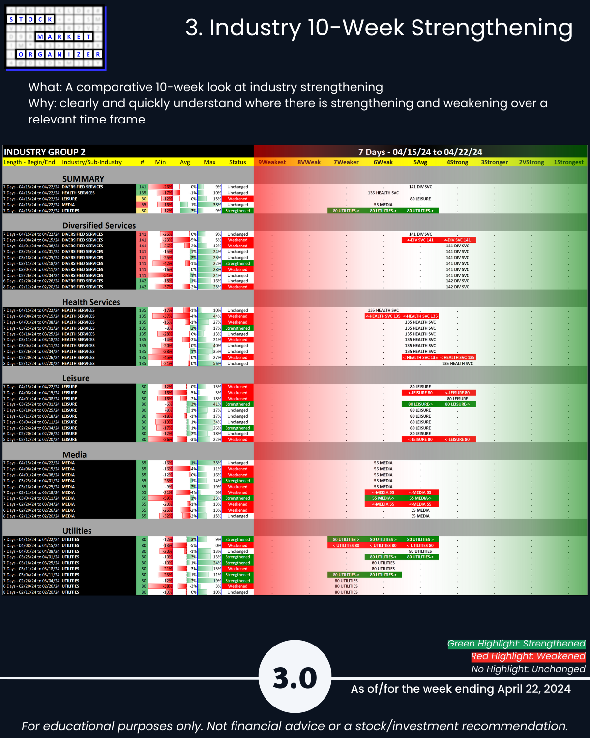 What you may not know that could be relevant: 🔹 Utilities completely reversed last week’s debacle and re-strengthened the 2 ranking levels it lost, enjoying 92% positive stocks vs. last week’s 99% negative, 🔹 Health Services is this group’s weak link with 71% negative stocks and a lagging Strongest:Weakest ratio of 13%:31%.